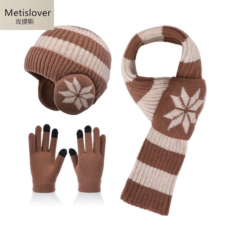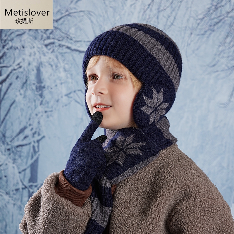 儿童帽子手套围巾套装男女宝宝加绒护耳套头帽冬季保暖针织毛线帽