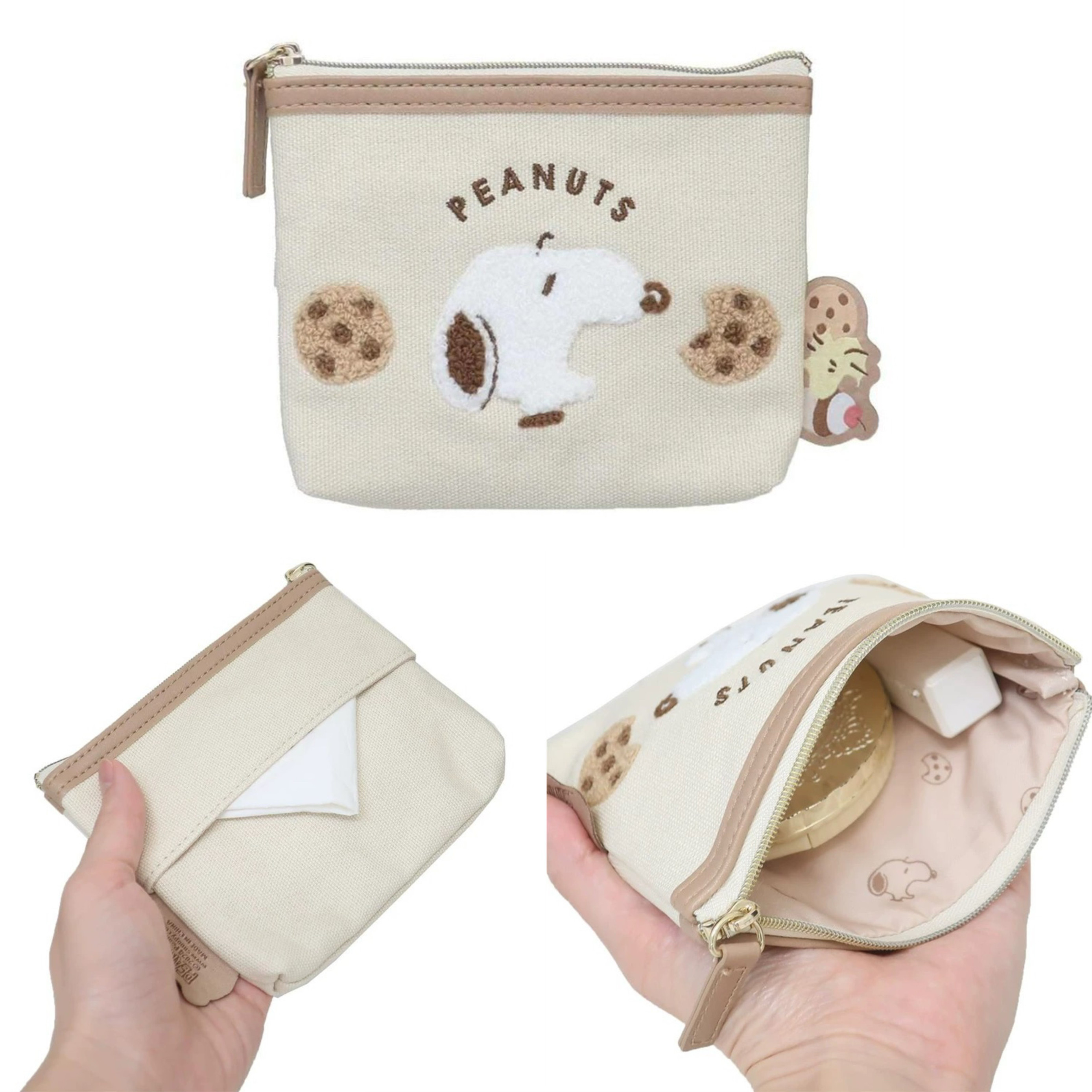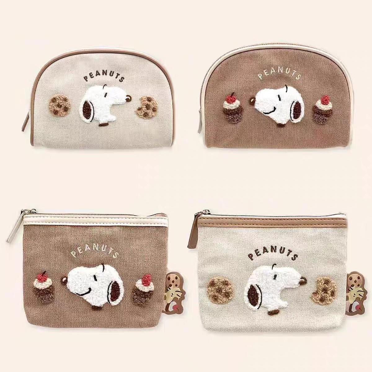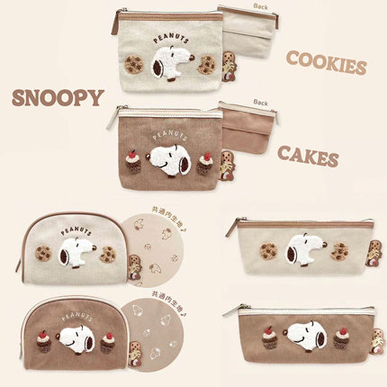 日系 史努比曲奇蛋糕植绒刺绣 化妆包纸巾包笔袋文具袋小物收纳包