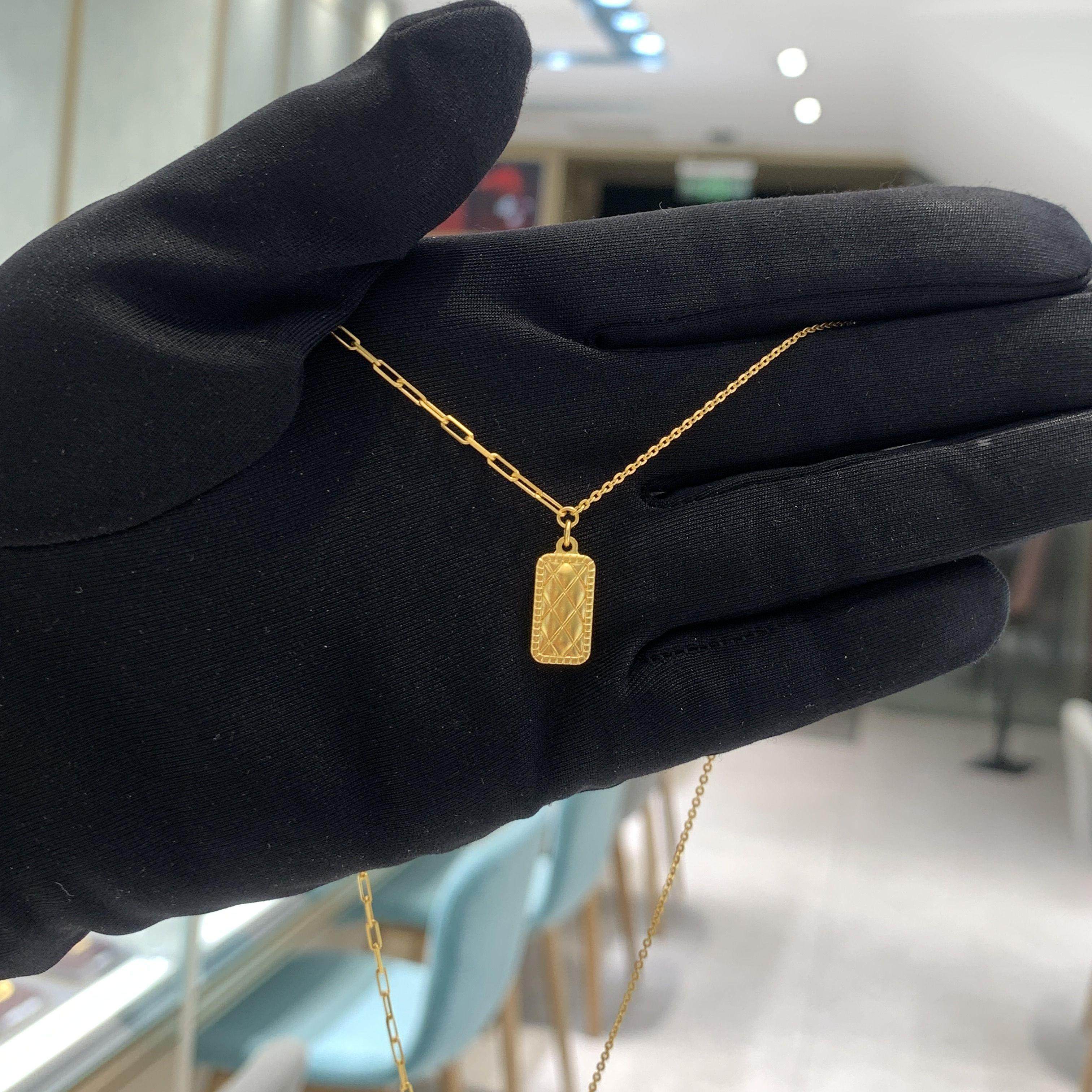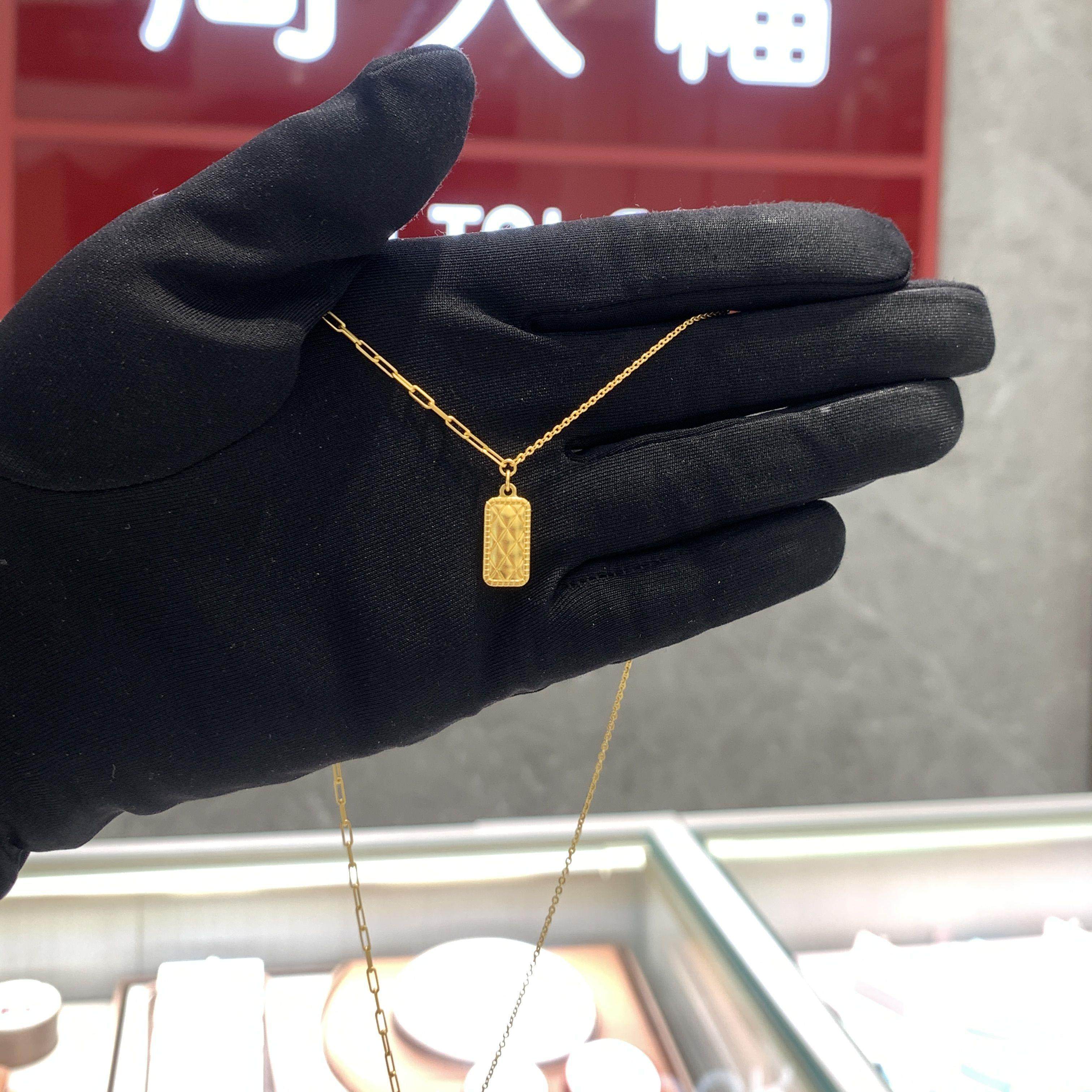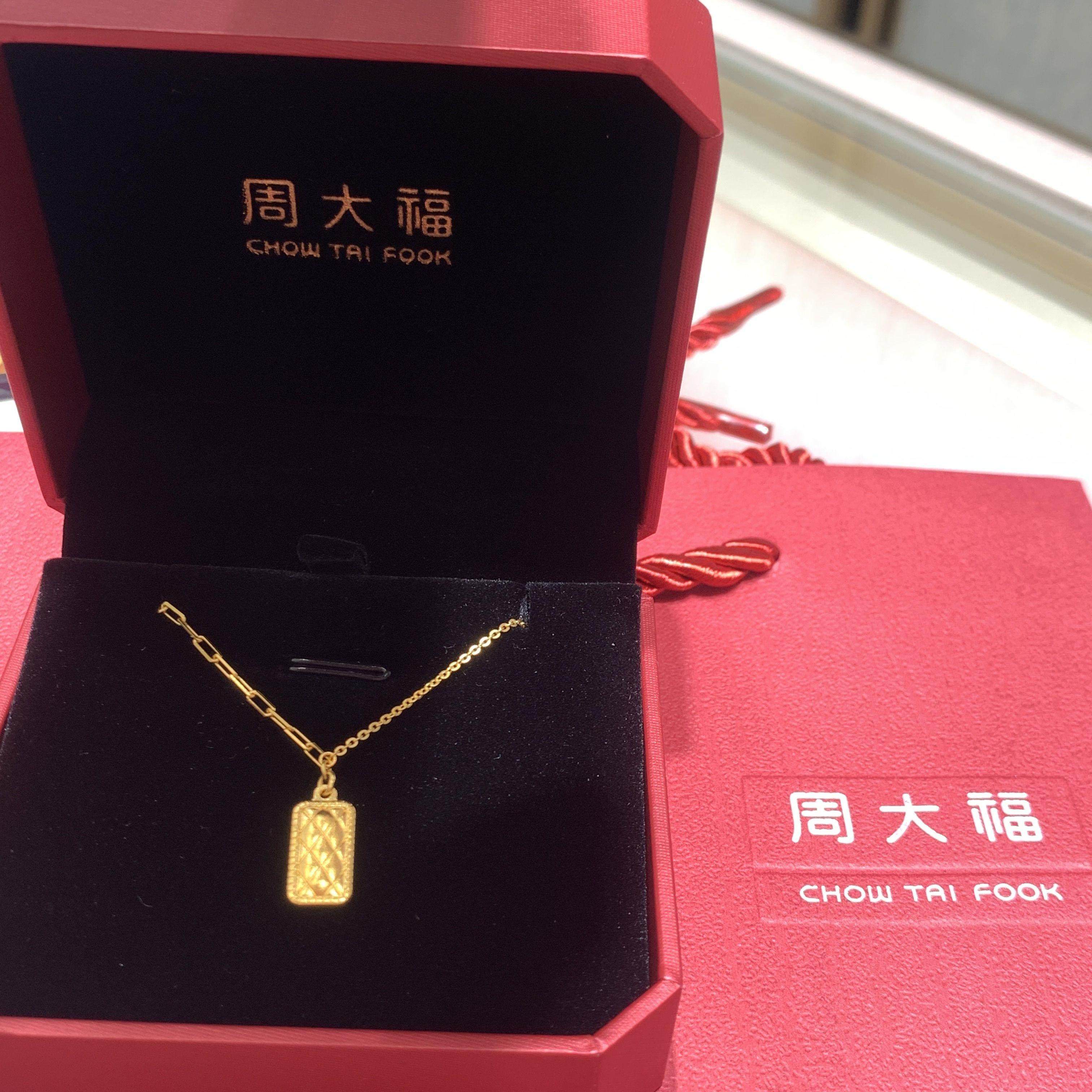 周大福菱格纹方块足金黄金项链