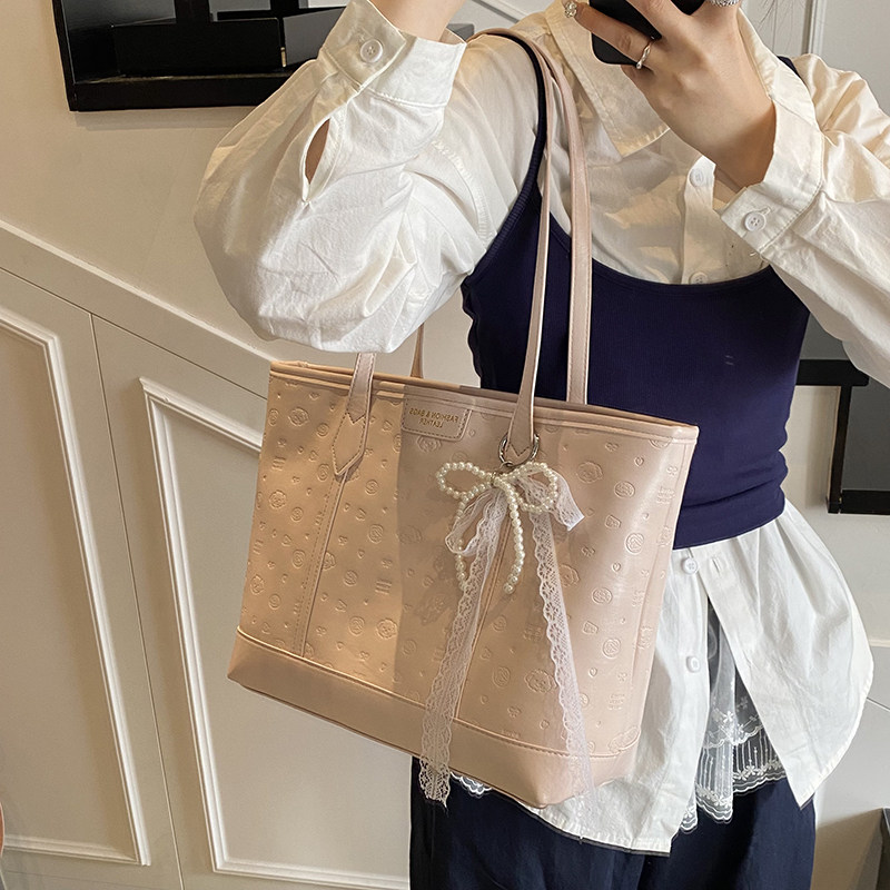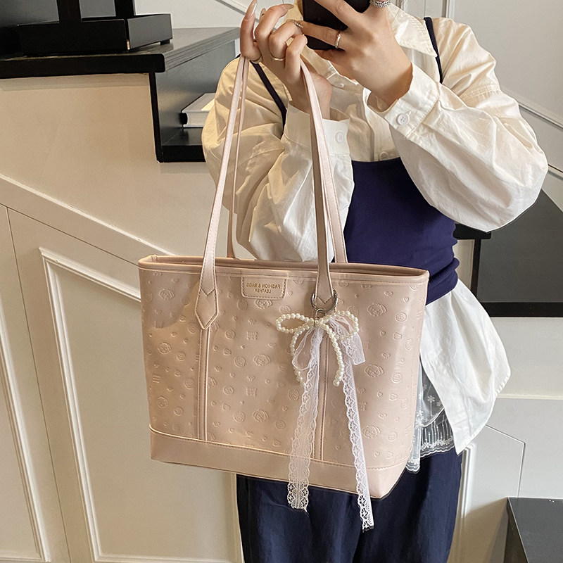 高级感可爱压花托特包包新款大容量休闲手提包百搭通勤单肩腋下包