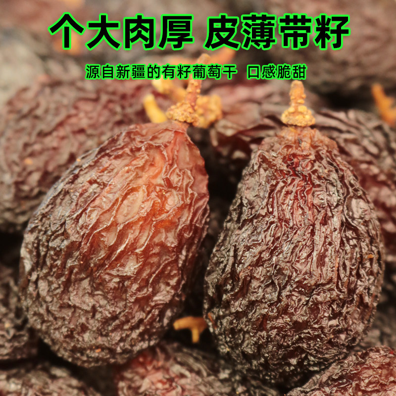 新疆特大带籽葡萄干优质新玉提子干超大干净有薄壳籽脆甜特产零食