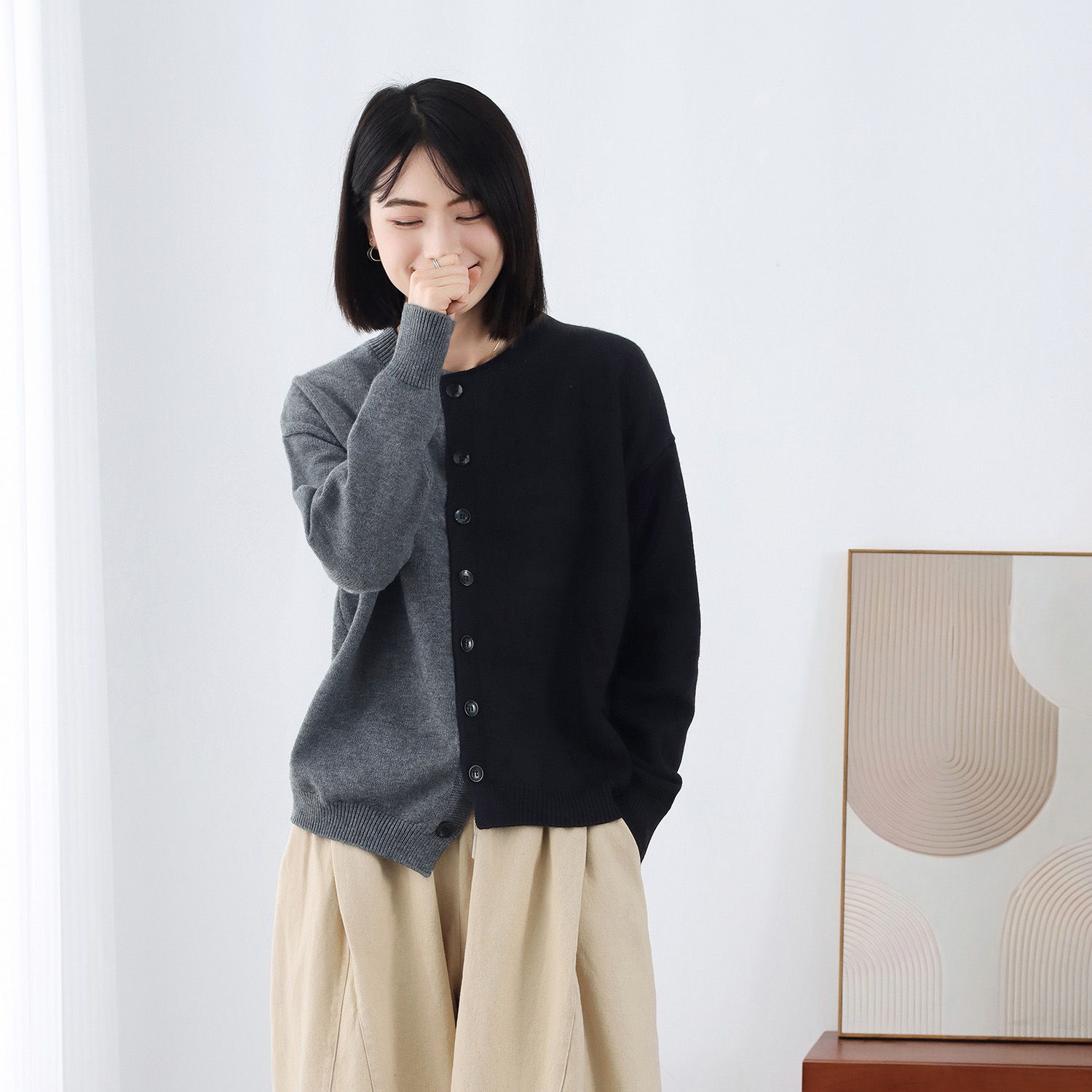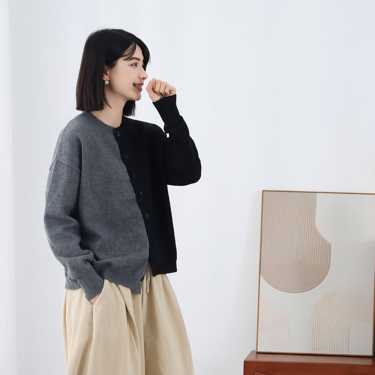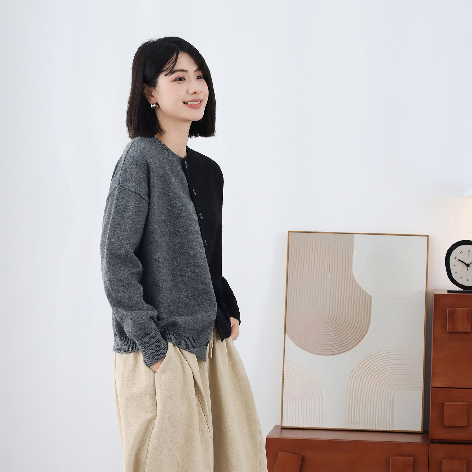 休闲针织衫女圆领文艺宽松百搭毛衣慵懒风中长款显瘦针织开衫外套