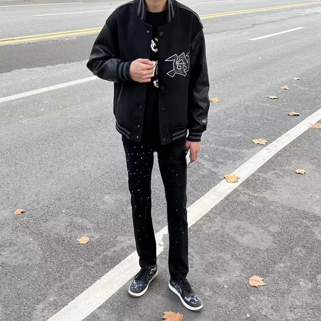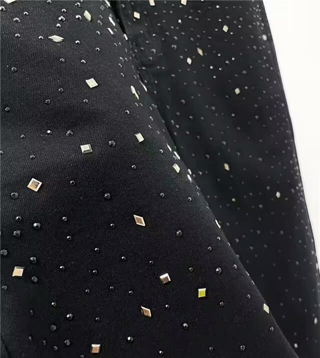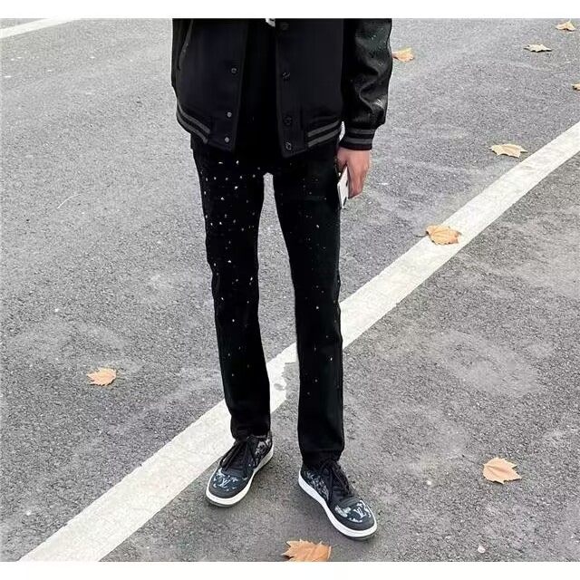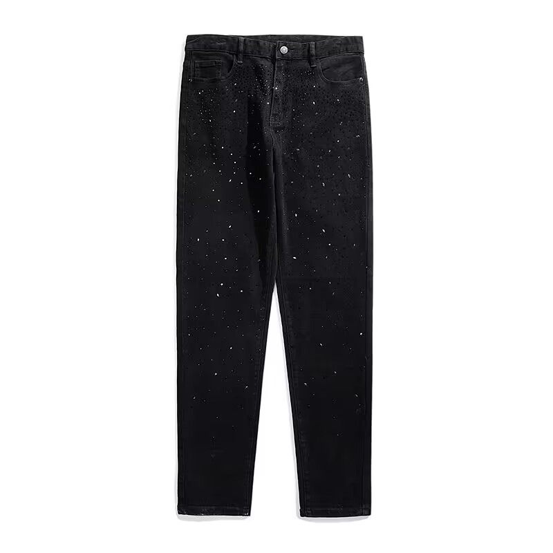 黑色烫钻满天星牛仔裤子男潮网红同款修身百搭潮牌学生休闲九分裤
