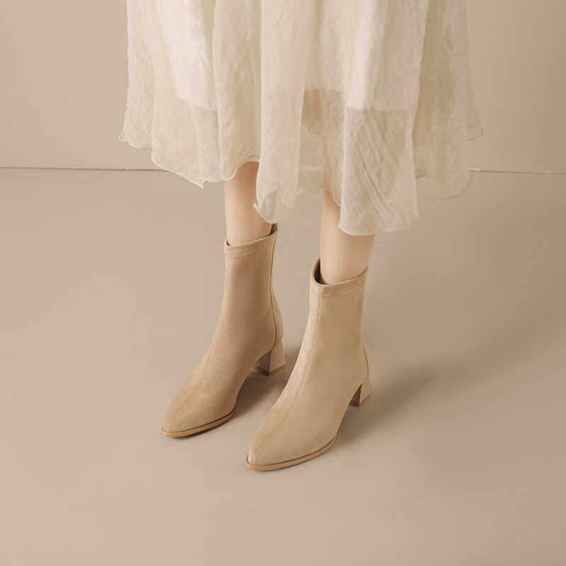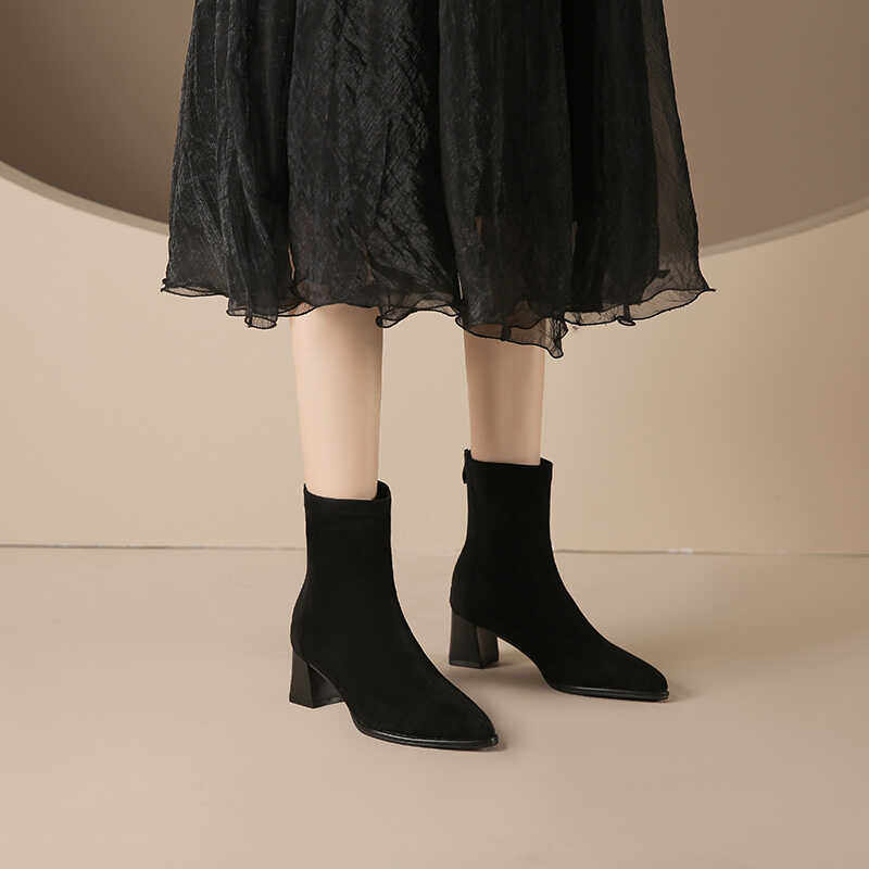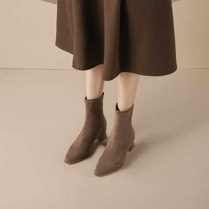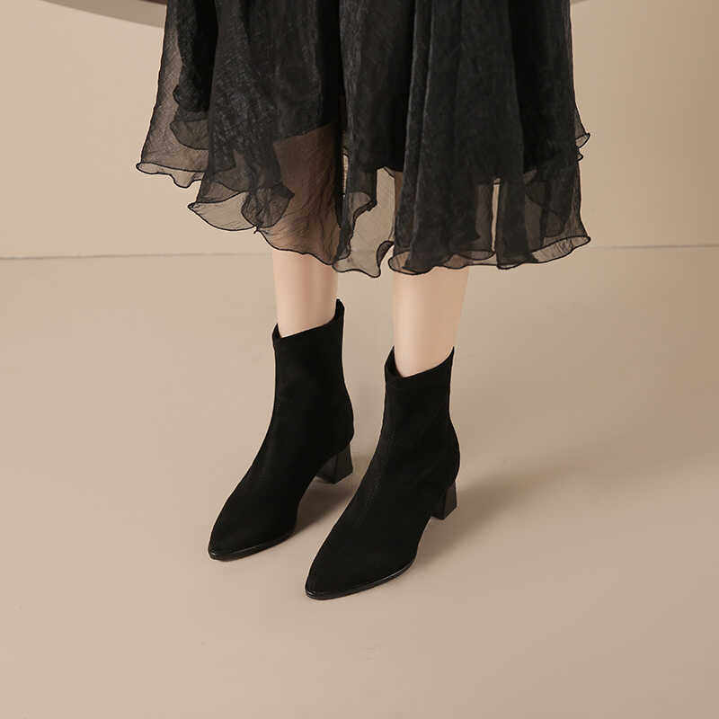 小码女靴313233后拉链短筒靴尖头马丁靴小个子34码瘦瘦靴2024秋冬