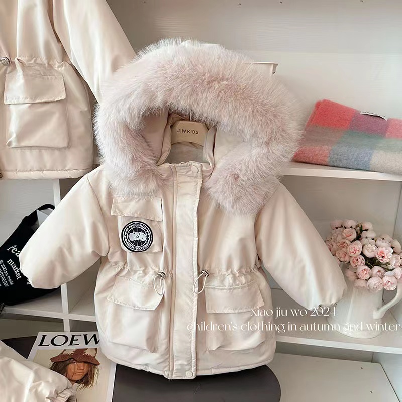 冬季男女儿童小孩加厚夹棉加绒连帽中长款免洗防水棉衣袄派克棉服