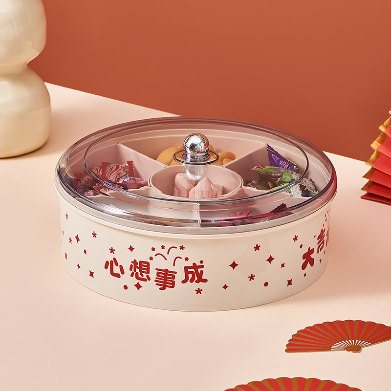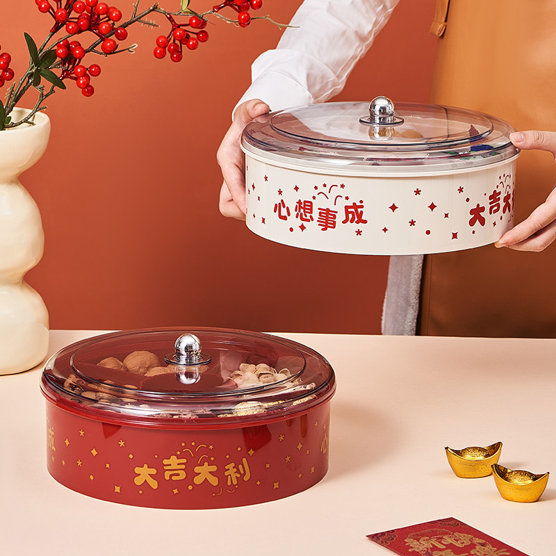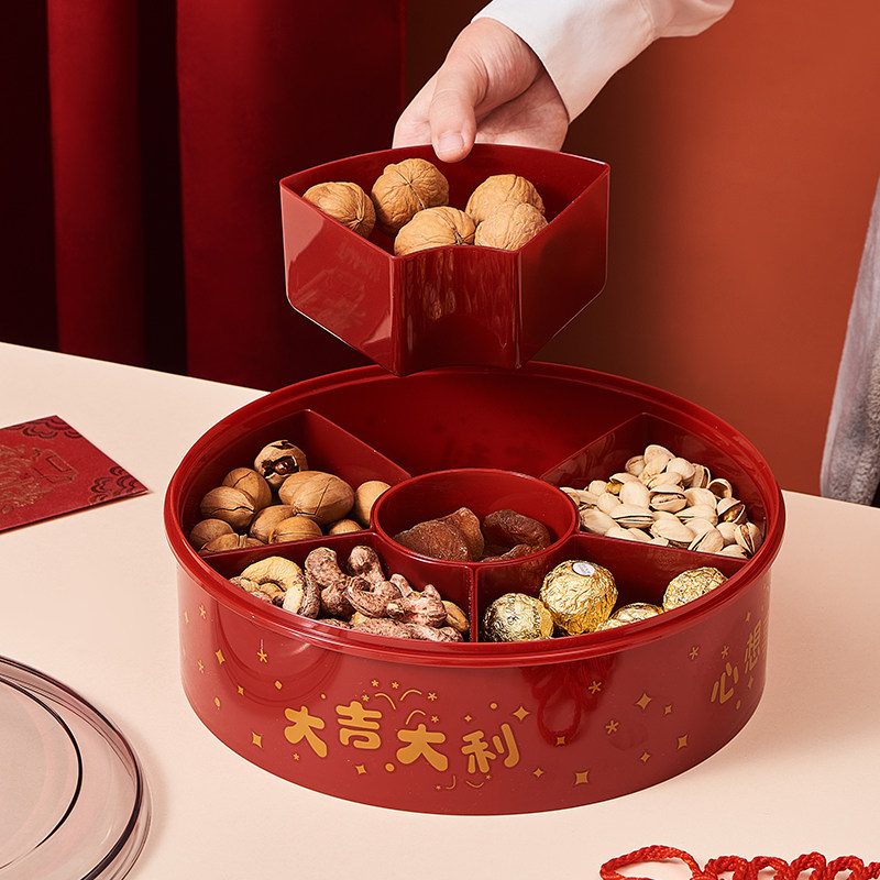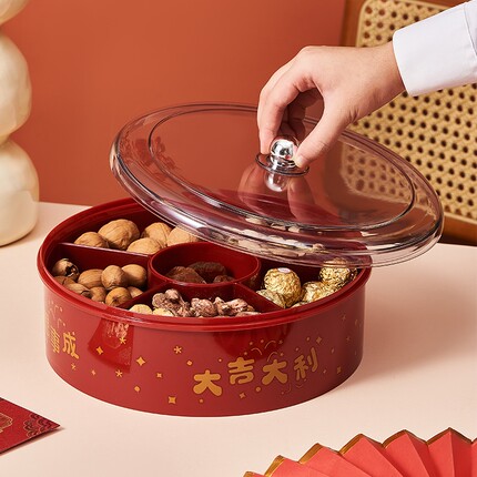 果盘客厅分格干果盒乔迁新年带盖零食坚果糖果盘家用精致年货红色