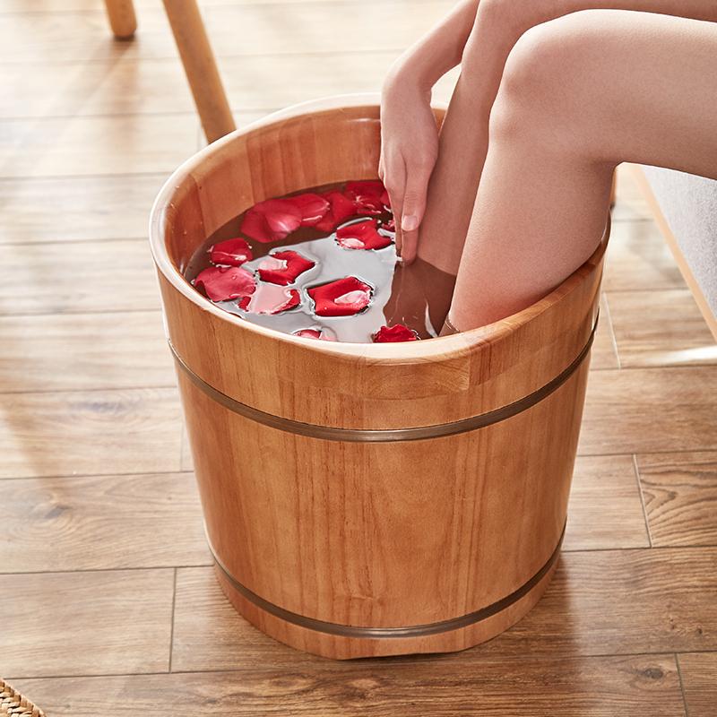 实木泡脚桶家用过小腿木桶按摩木盆高深洗脚盆保温养生过膝足浴桶