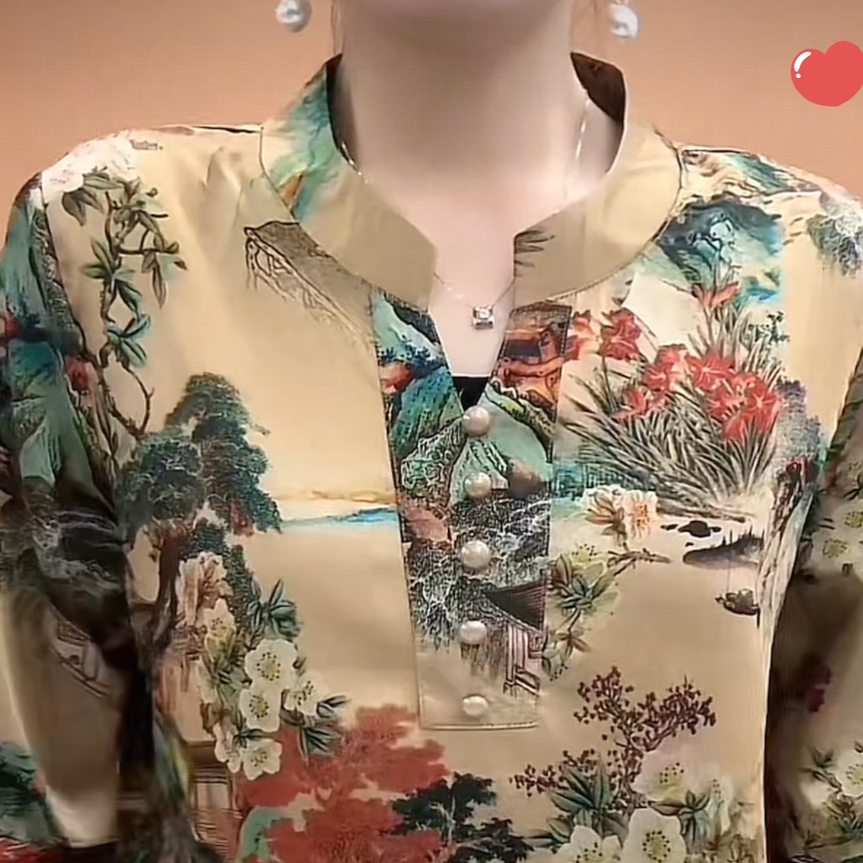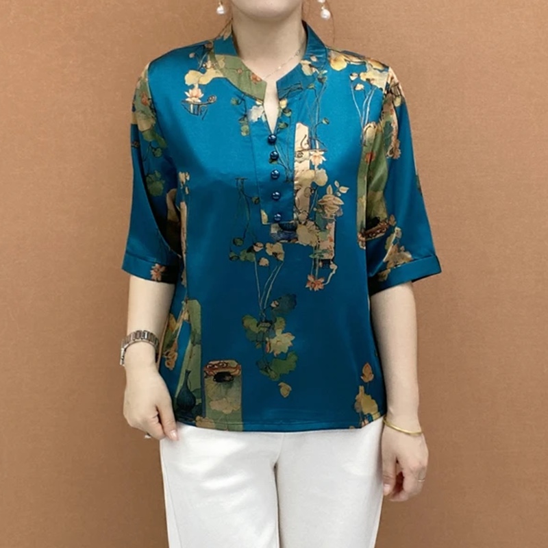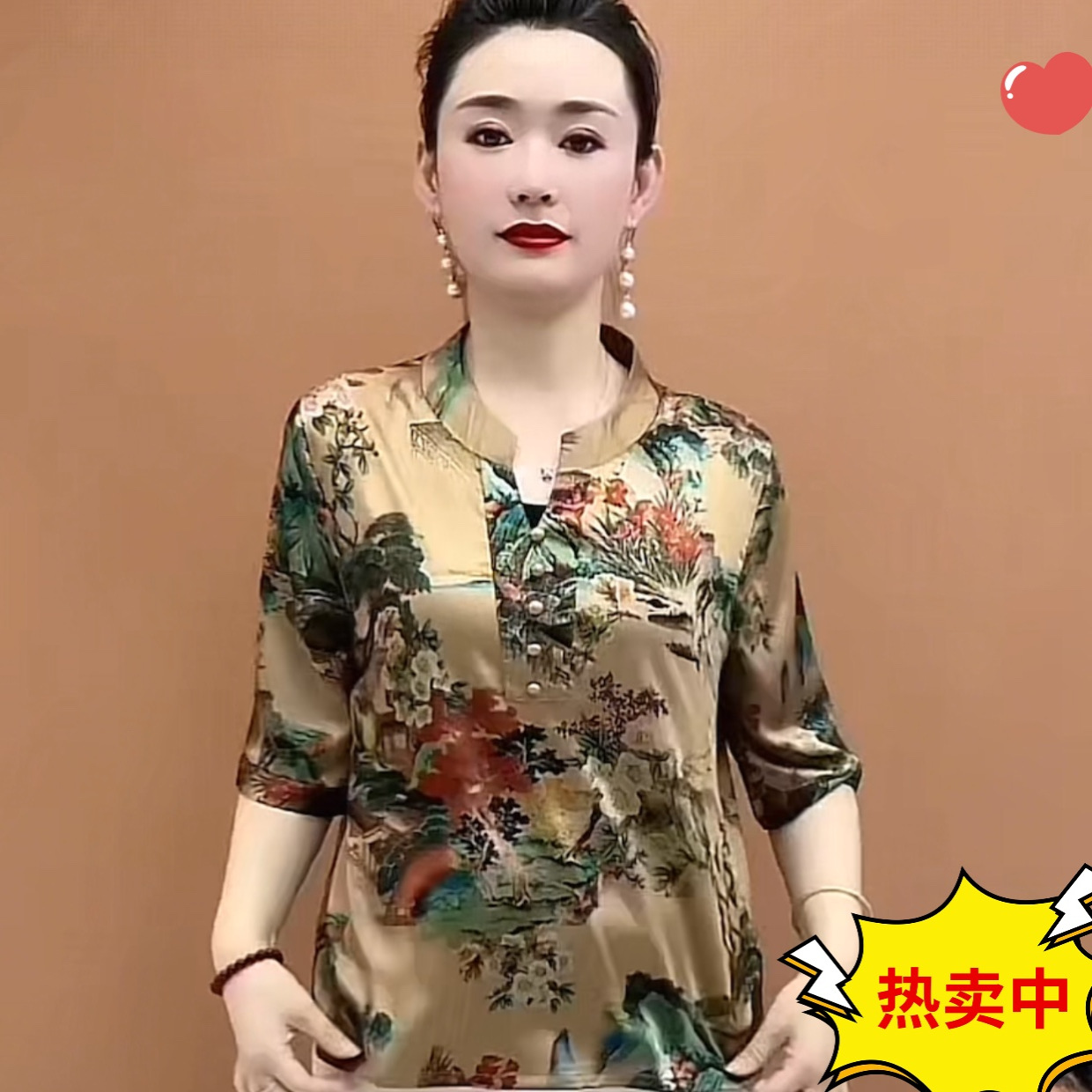 小衫女时尚复古宽松洋气新款妈妈中老年夏装T恤大码印花高级显瘦