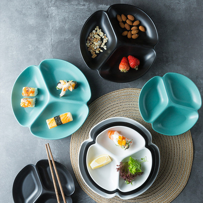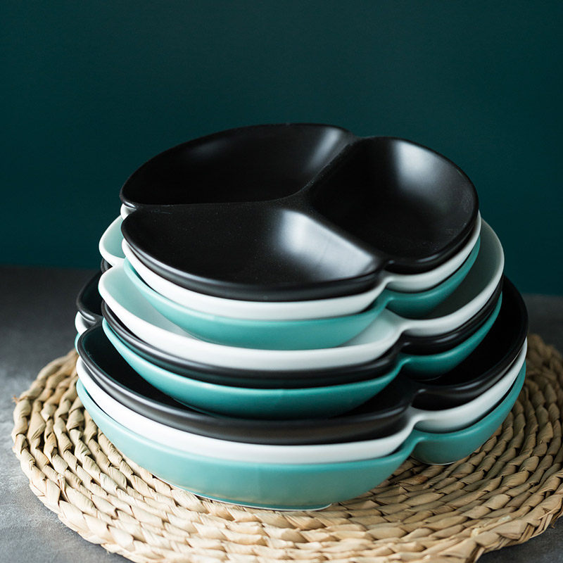 北欧创意分格盘子水果分隔圆盘餐具不规则瓷盘凉菜盘水果盘陶瓷盘