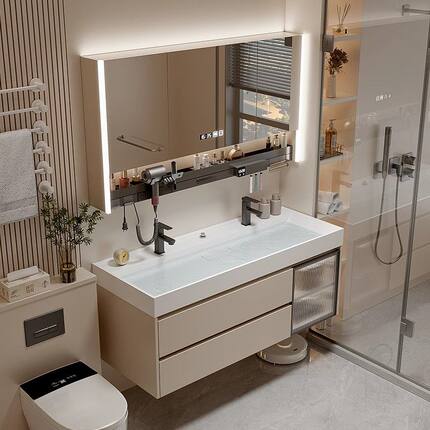 莫顿2025新款浴室柜大口径一体盆简约轻奢卫生间洗漱池台盆柜组合