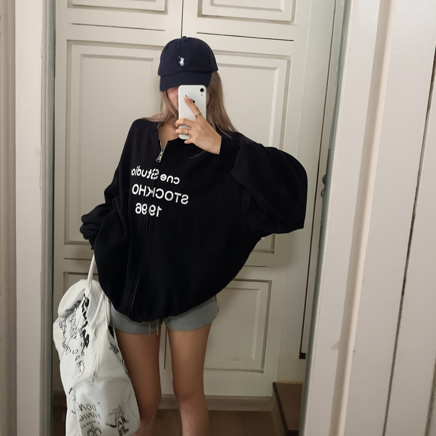 饭饭又饿了复古字母印花拉链外套