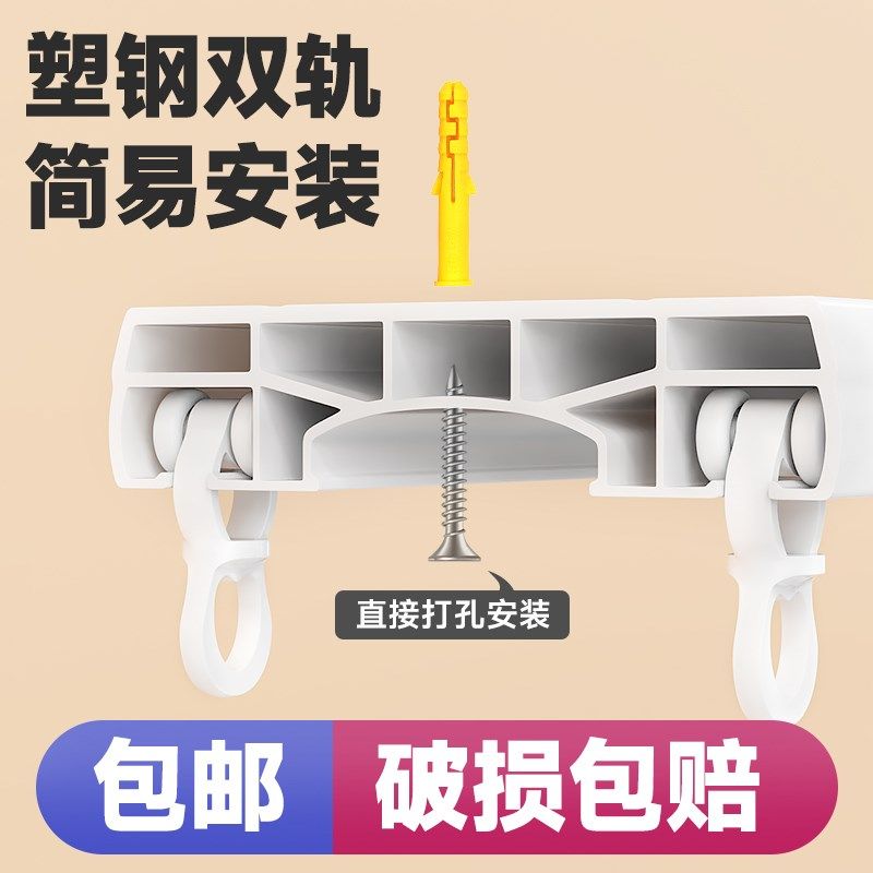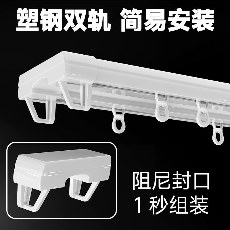 连体双轨窗帘轨道静音顺滑双滑轨窗帘配件简约静音窗帘杆罗马杆