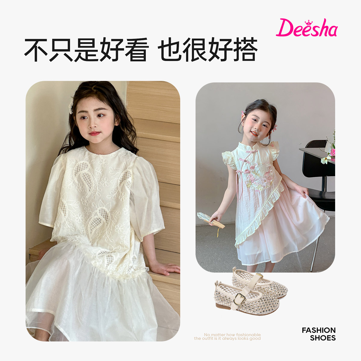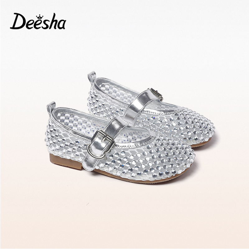 笛莎女童鞋子儿童凉鞋2025年新款夏季小女孩网面水钻软底公主鞋