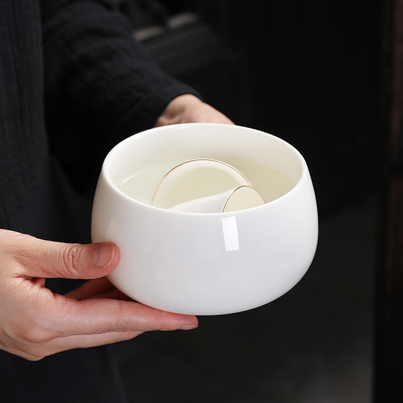 羊脂玉杯洗德化白瓷小号茶洗碗陶瓷茶洗功夫茶具茶道配件笔洗水盂