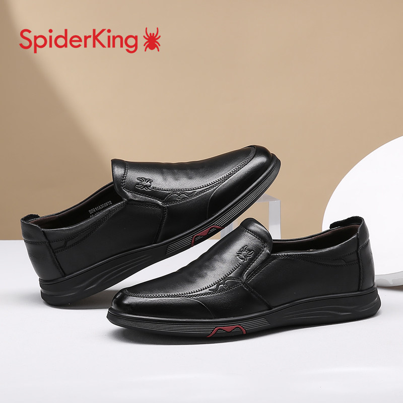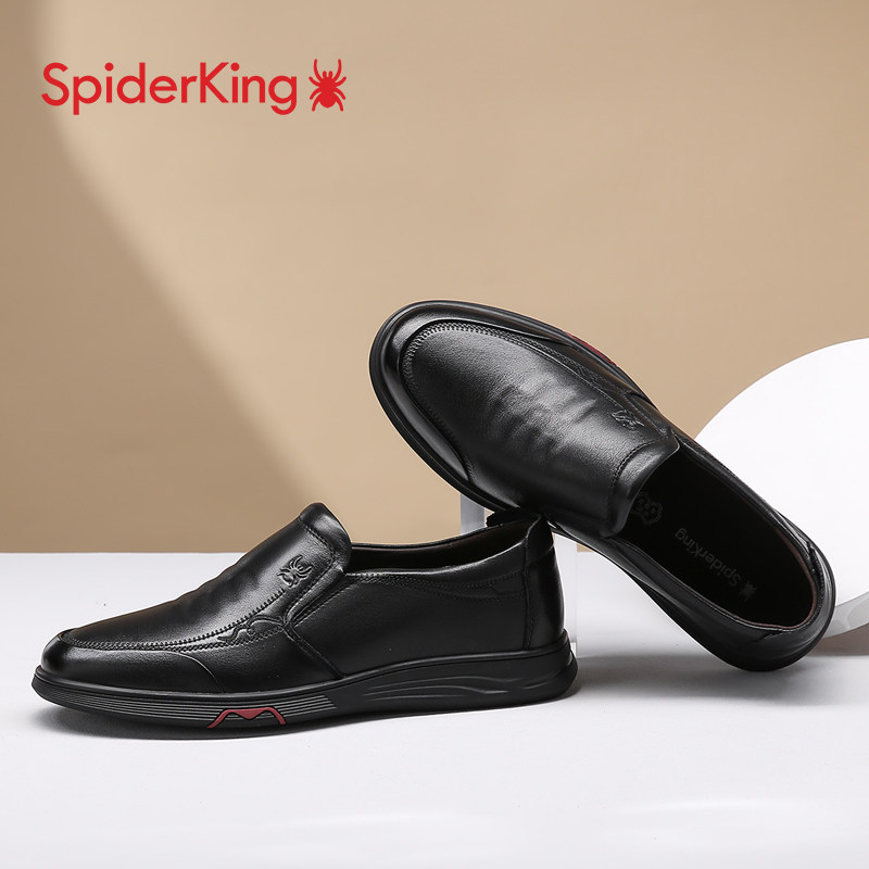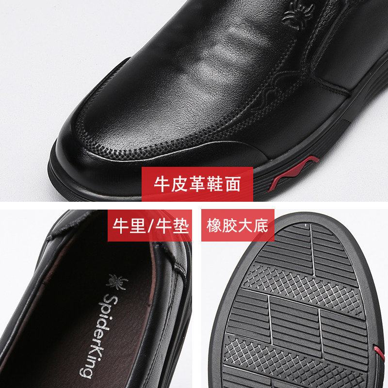 蜘蛛王男鞋2025秋冬新款小码皮鞋男款舒适软底爸爸鞋真皮结婚皮鞋