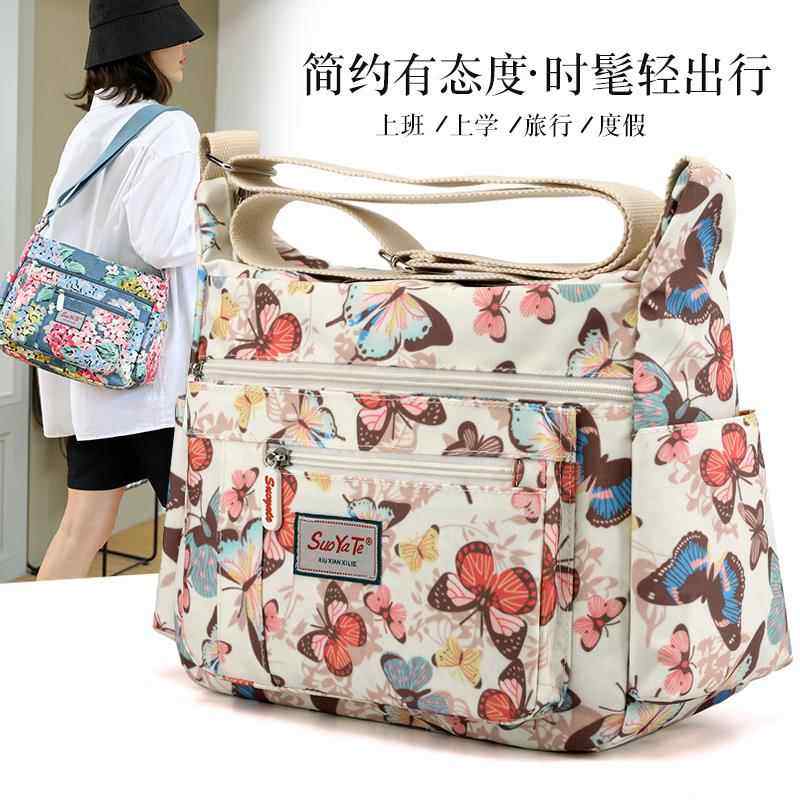 新款印花斜挎包女大容量女士背包休闲帆布单肩包防水尼龙布小包包