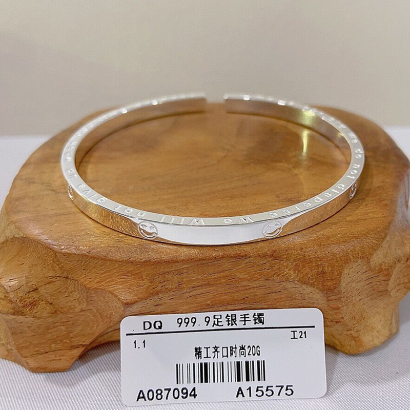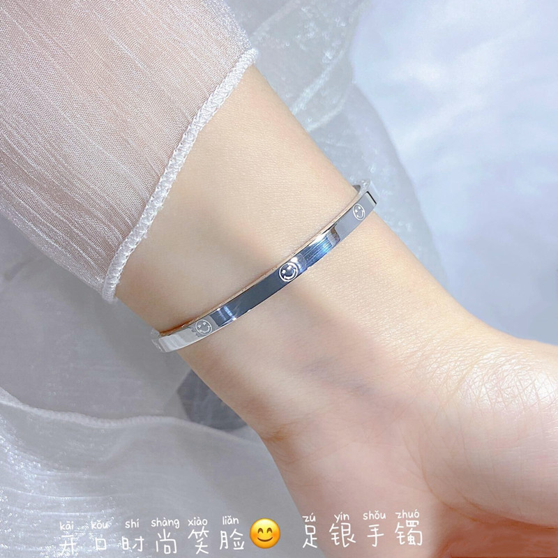 英文字母笑脸9999纯银手镯少女美女银饰生日开口实心学生银镯礼物