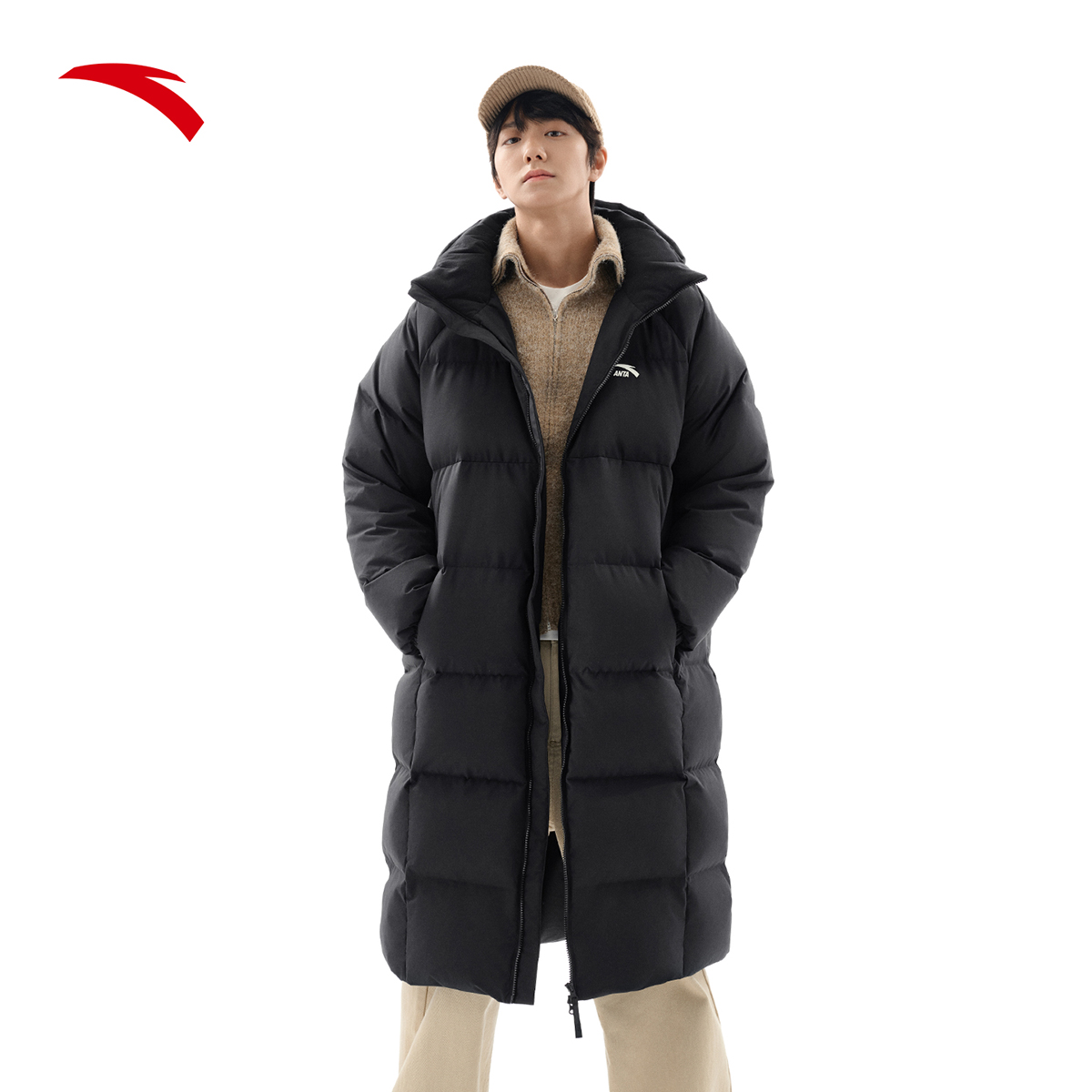 安踏面包羽绒丨六度芯过膝长款羽绒服男2025新款连帽棉服运动外套