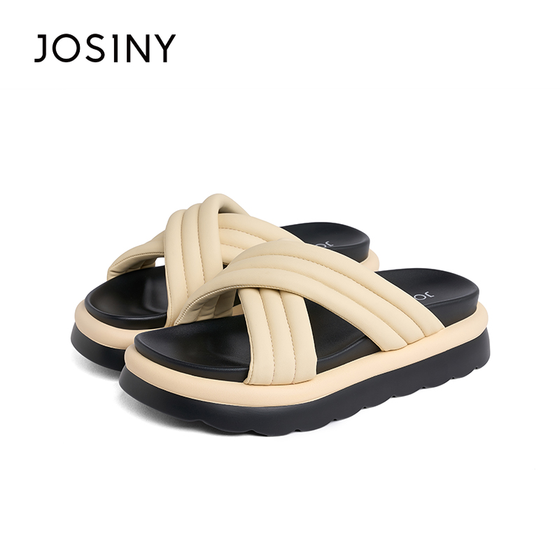 卓诗尼夏季凉鞋撤柜正品女士凉拖鞋圆头厚底交叉外穿一字拖休闲潮