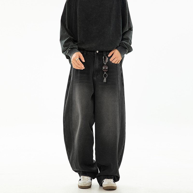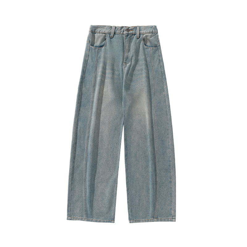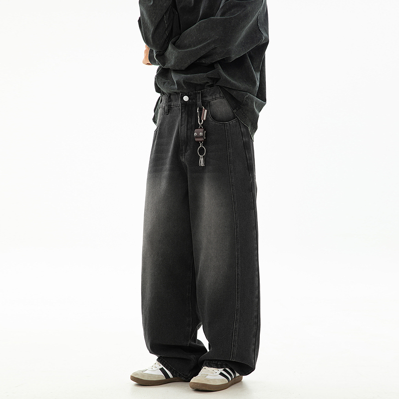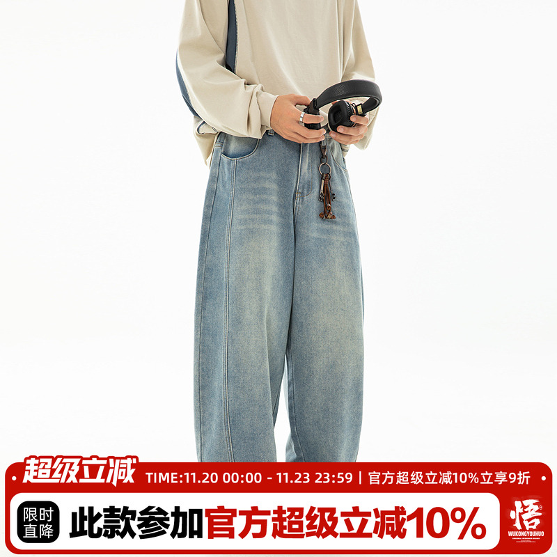 悟空有货潮牌美式阔腿直筒牛仔裤男复古宽松潮流百搭水洗做旧长裤