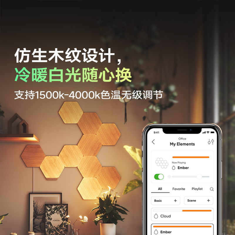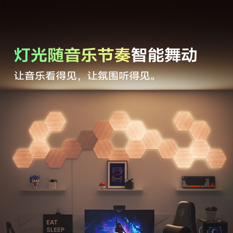nanoleaf奇光万物木纹奇光板LED蜂巢客厅墙面新年氛围声控灯礼物