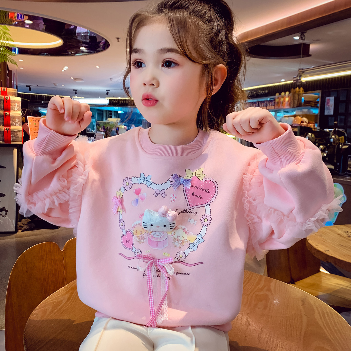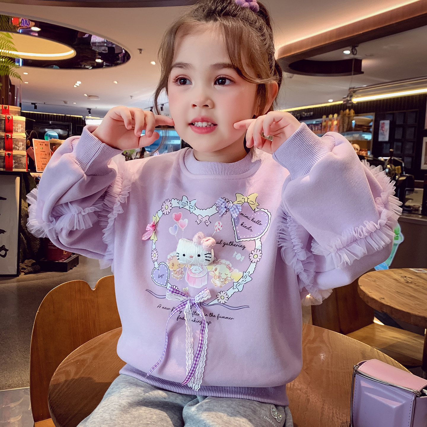 米米哈罗女童加绒圆领卫衣女孩冬装2025新款儿童韩版卡通印花上衣