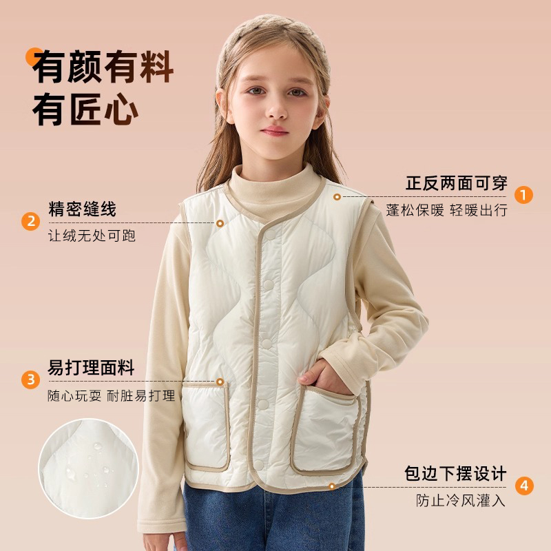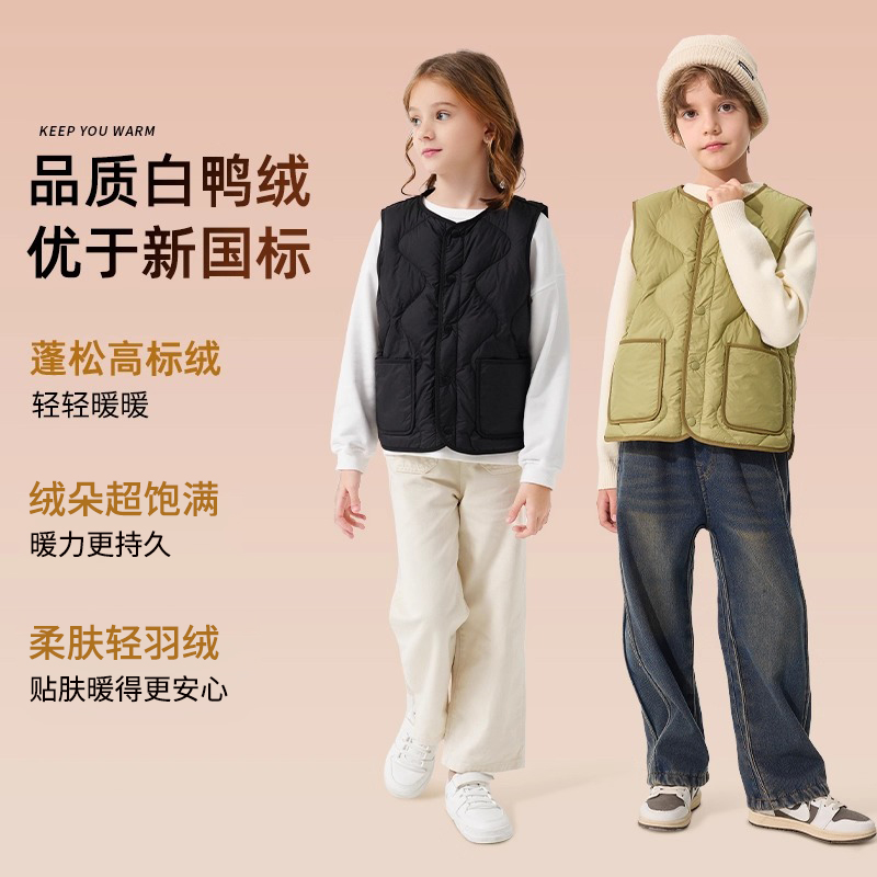 罗蒙儿童羽绒马甲轻薄内胆校服神器冬季男童女童内搭大童背心外穿