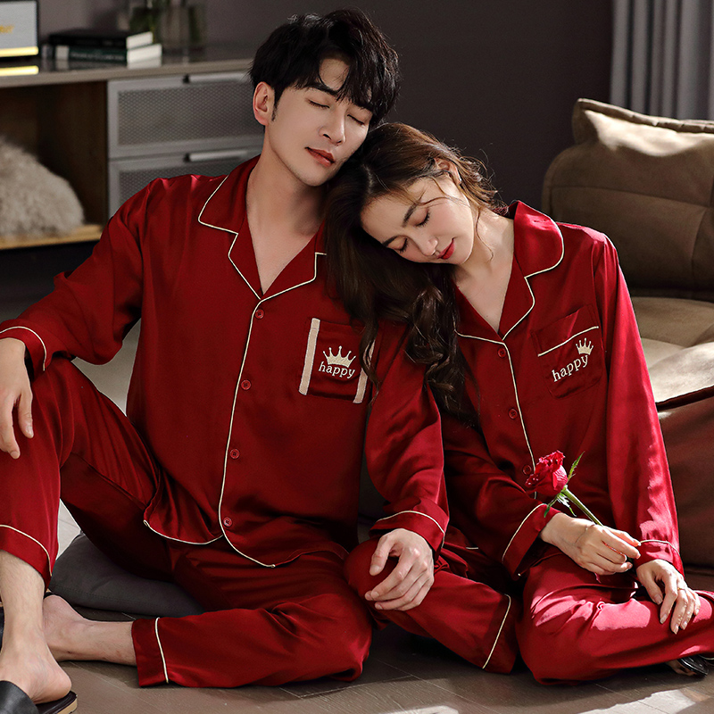 思馨坊睡衣女春秋冰丝长袖红色结婚新婚喜庆家居服情侣男士套装夏