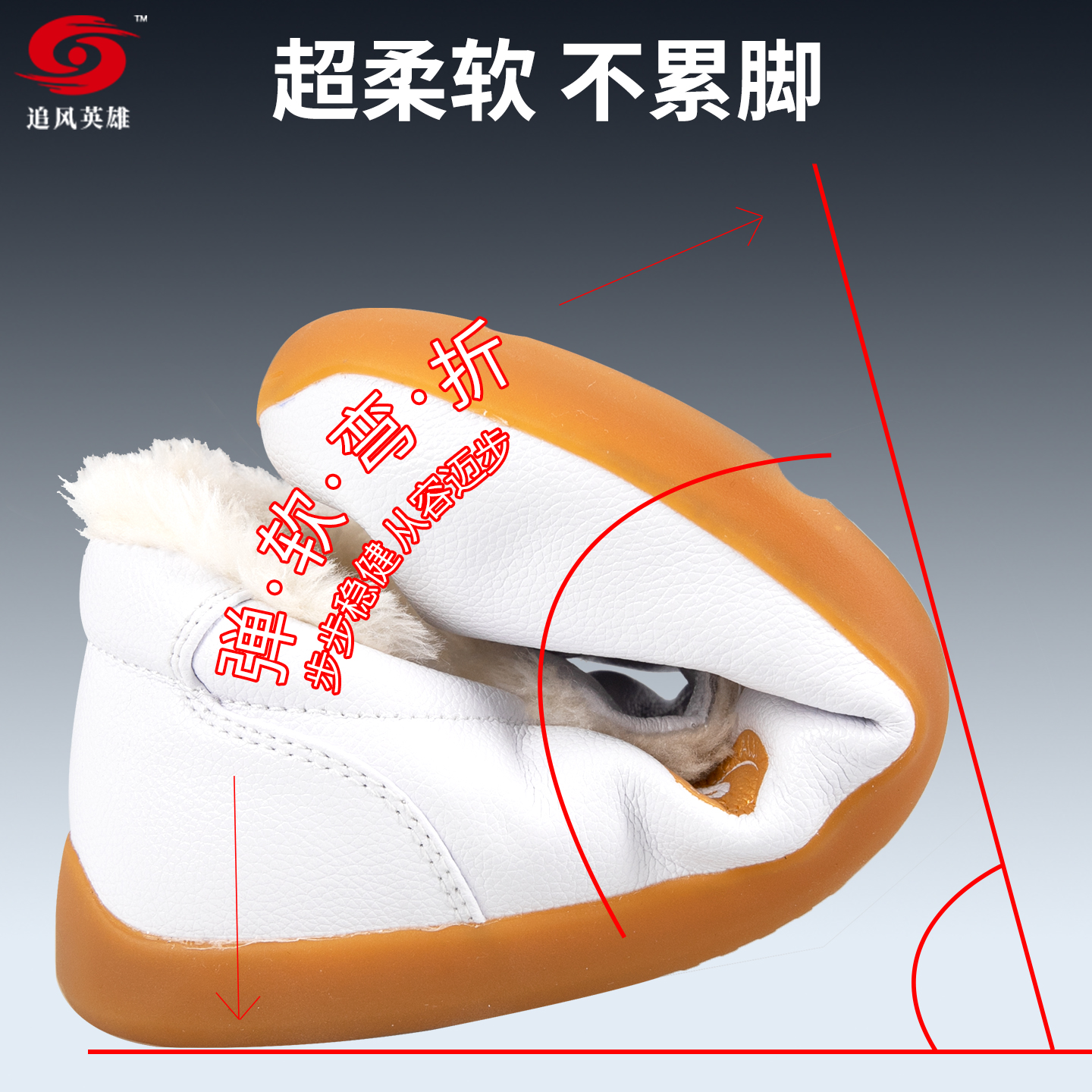 太极鞋女款秋冬季真皮牛筋底加绒八段锦练功鞋武术专用鞋小白鞋男