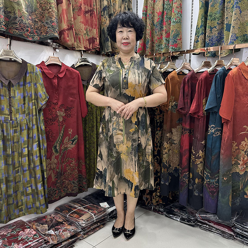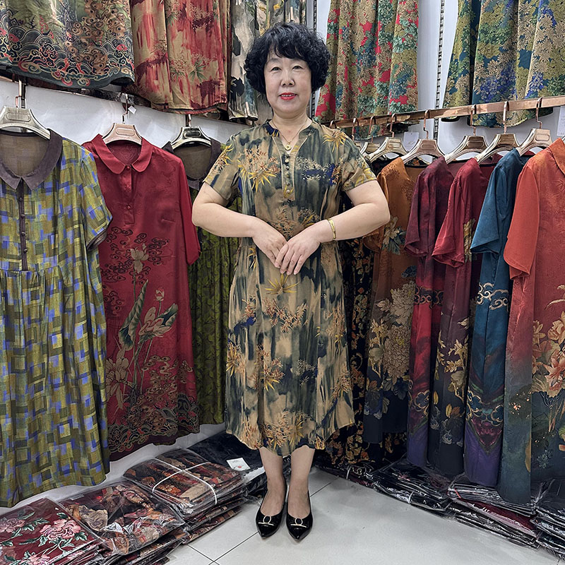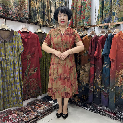 中年妈妈夏装桑蚕丝连衣裙女中长