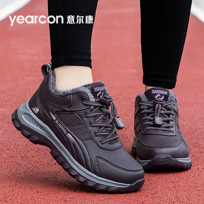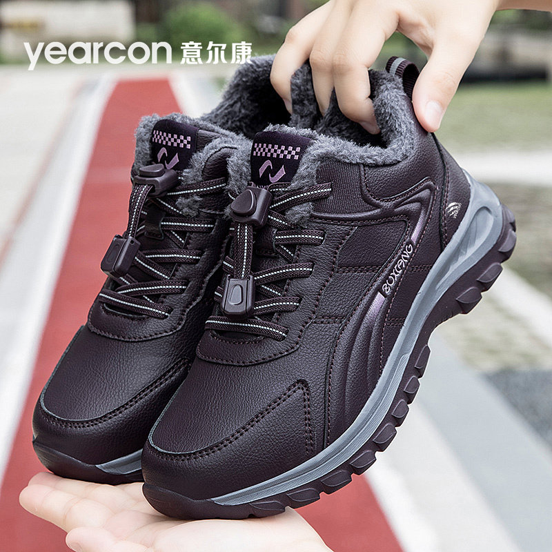 意尔康老人鞋女鞋冬季加绒保暖妈妈雪地棉鞋防滑中老年运动健步鞋