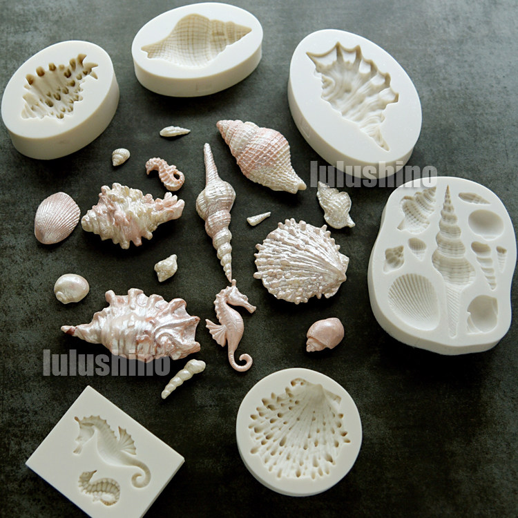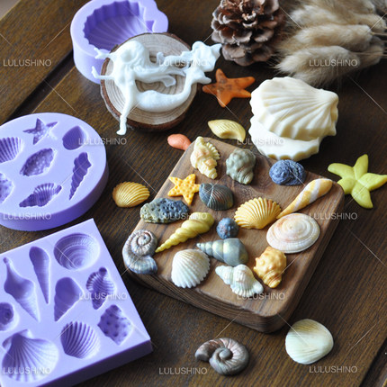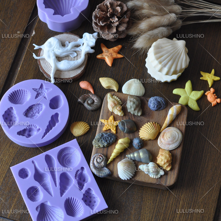 翻糖硅胶模具 干佩斯造型 海螺美人鱼贝壳珍珠海马海星 海洋主题