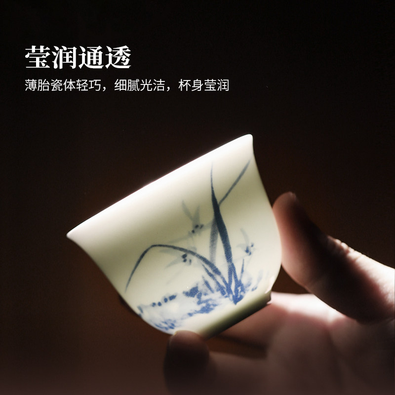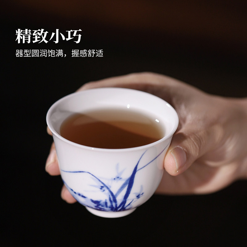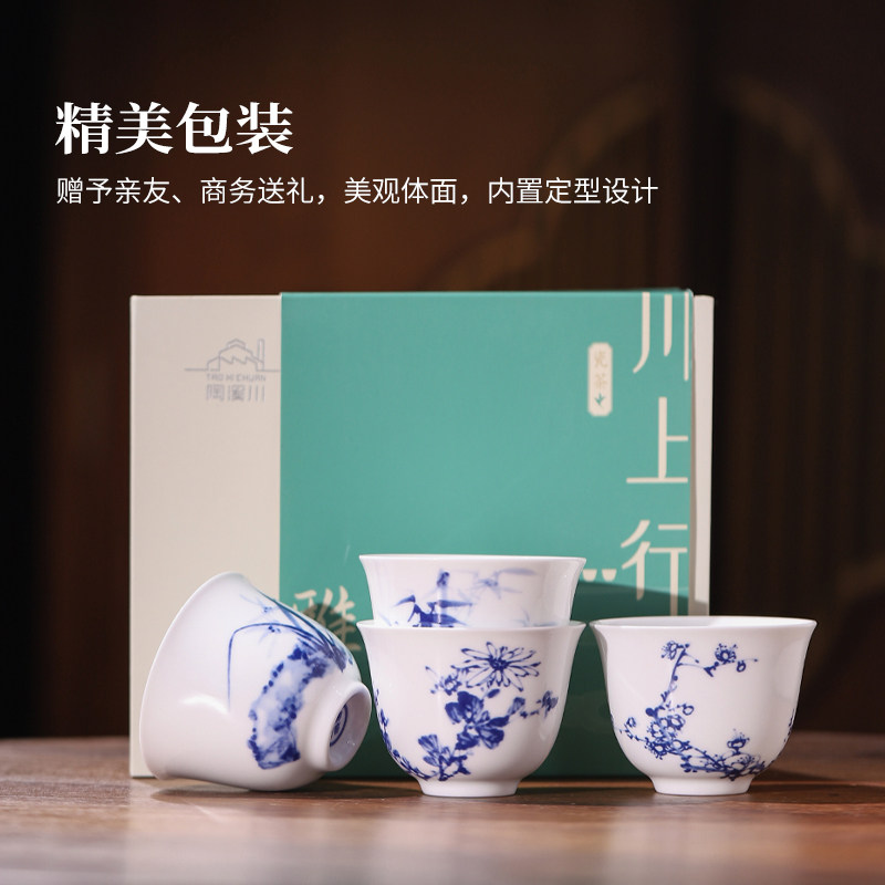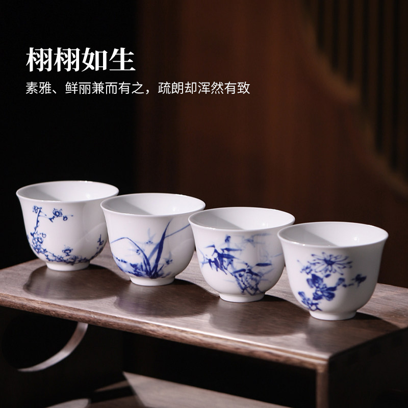 景德镇官方陶瓷茶具梅兰竹菊青花品茗杯茶盏中式茶杯套装伴手礼