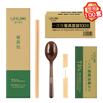 烧烤一次性筷子套装高档四件套牛皮纸快餐商用外卖饭店餐具野炊