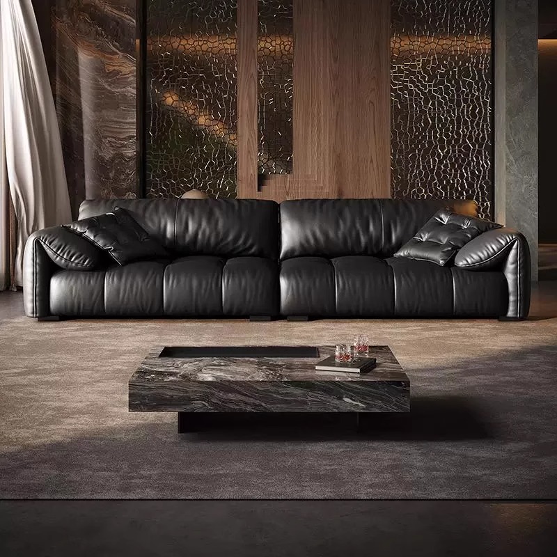 黑色大象耳朵真皮沙发现代简约客厅意式极简轻奢直排小户型复古风