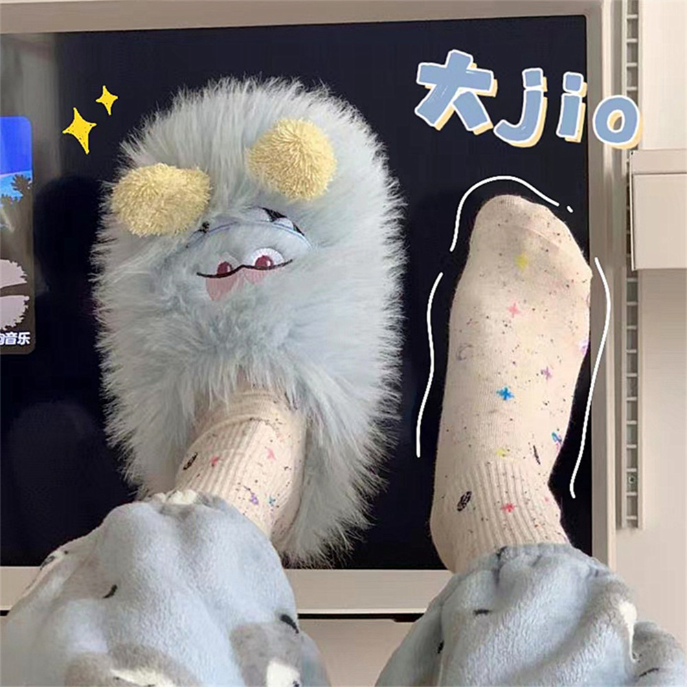 细细条 情侣小怪兽棉拖鞋冬季防滑软厚底可爱保暖毛绒居家鞋男女