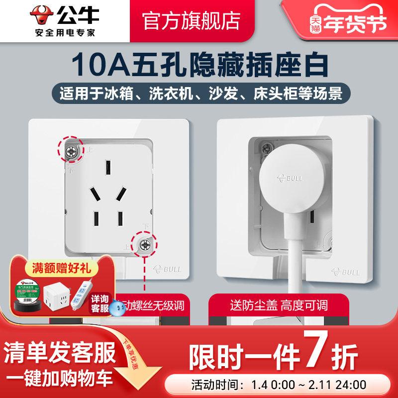 公牛插座隐藏插座嵌入式隐形插座内凹内嵌式插座冰箱五孔86型面板