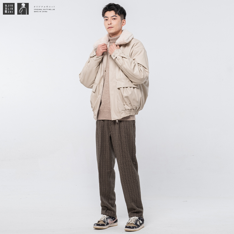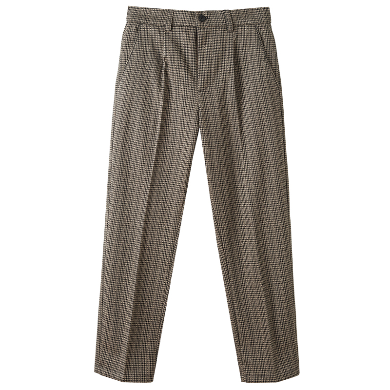 九六致春款加厚格子毛呢裤西裤男冬季高级直筒宽松休闲长裤潮