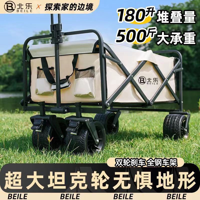 新款露营推车可折叠户外手推野餐车便携营地拖车拉杆小拉车野营车