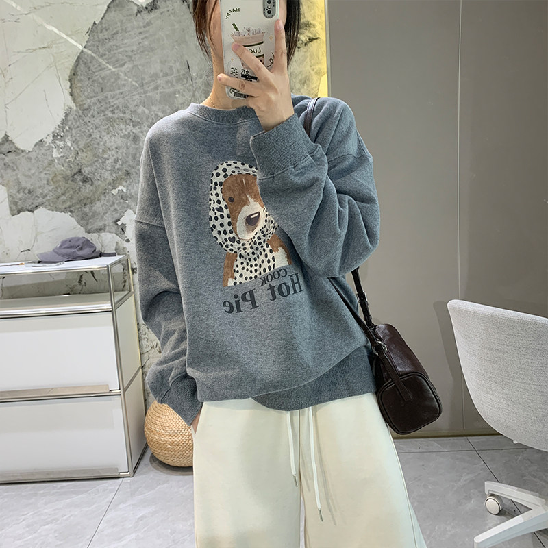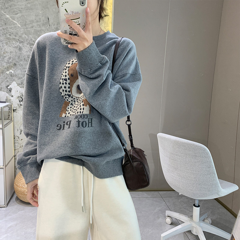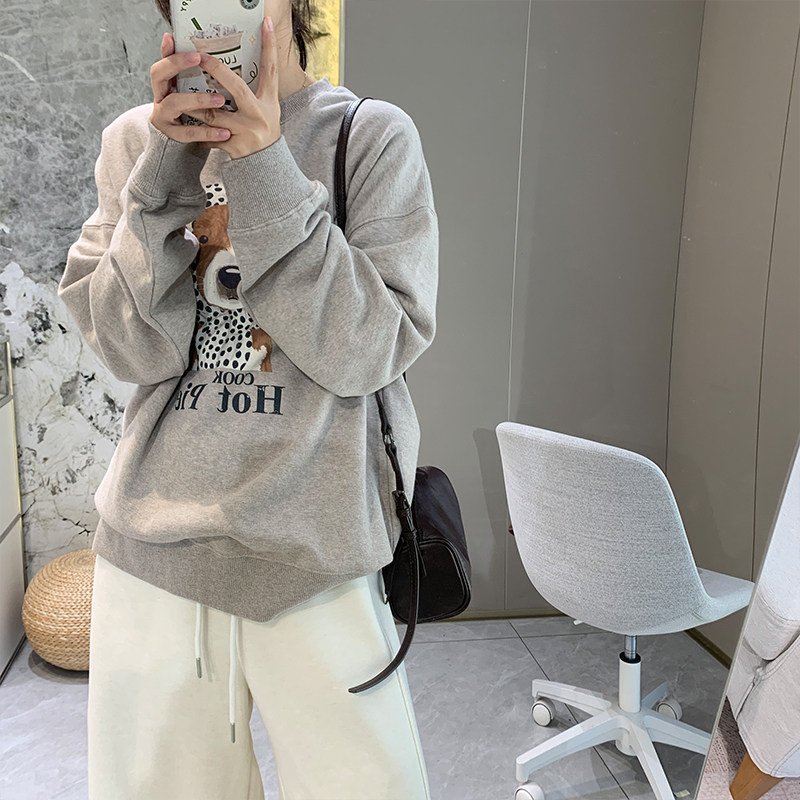 软糯加绒韩版卡通套头卫衣女2025秋冬季加厚宽松圆领全棉长袖上衣