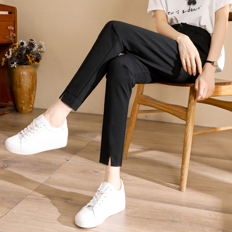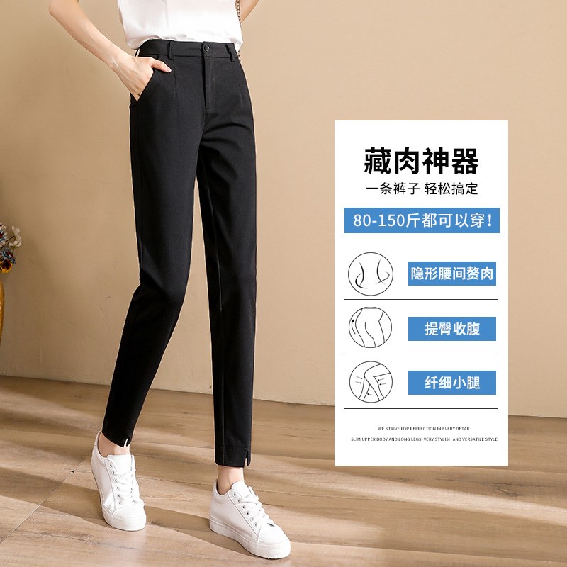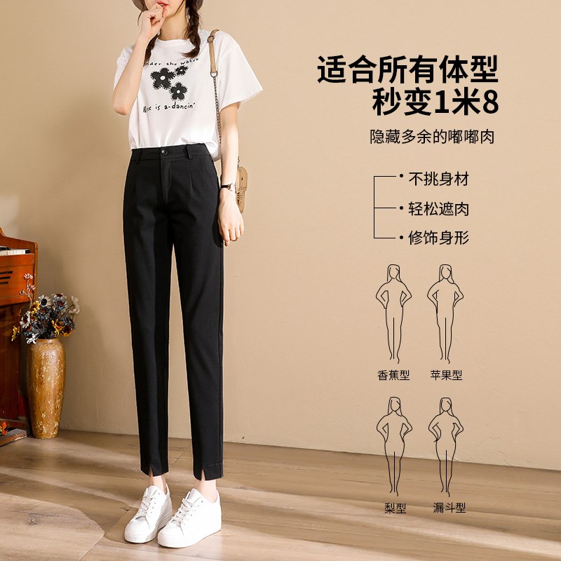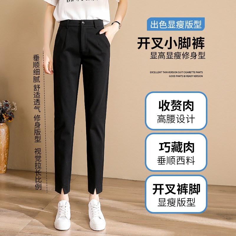 黑色裤子女2024新款夏季直筒宽松高腰显瘦小个子九分开叉哈伦女裤