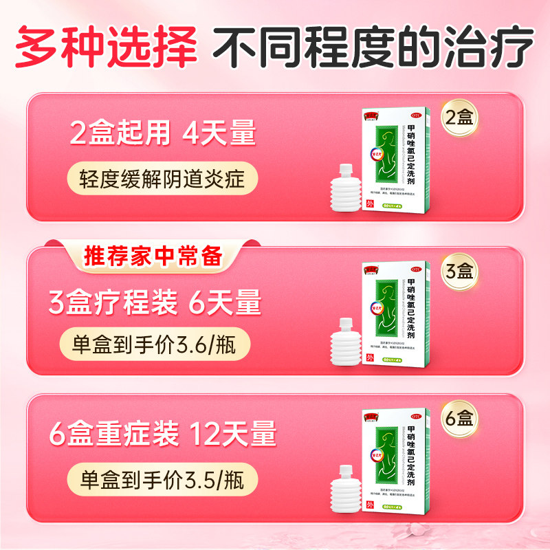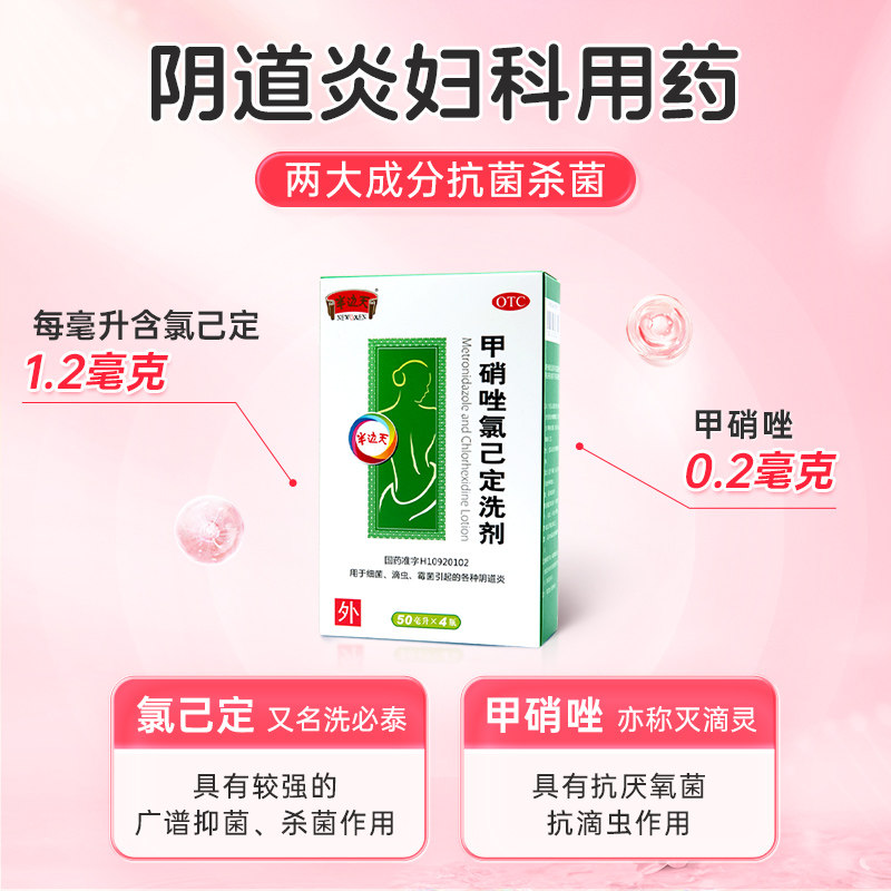 【自营】【半边天】甲硝唑氯己定洗剂0.02%0.12%*50ml*4瓶/盒阴道炎外阴瘙痒