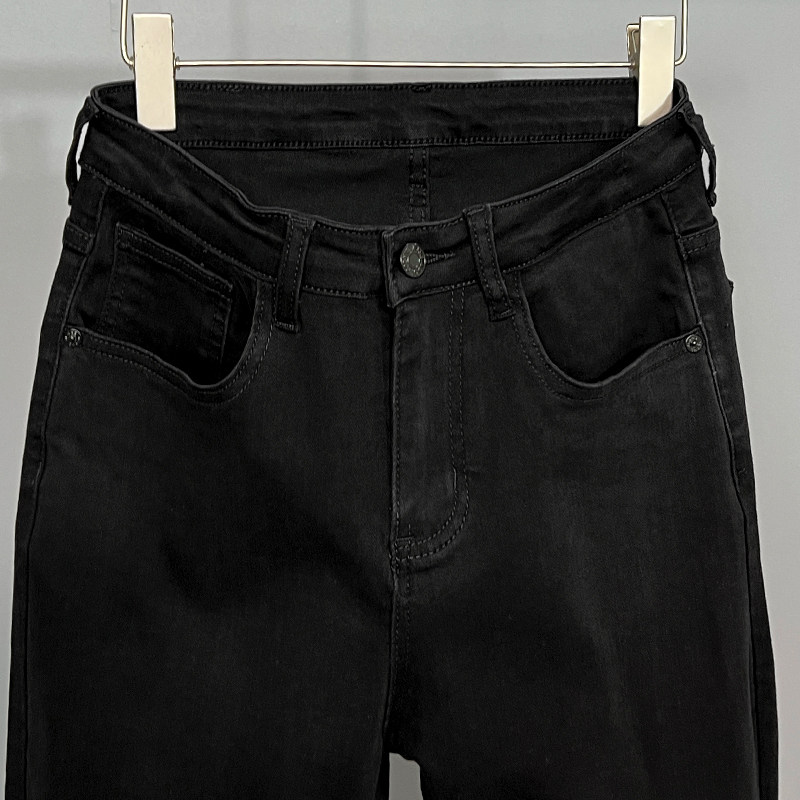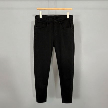 九分牛仔裤男修身小脚简约纯黑色