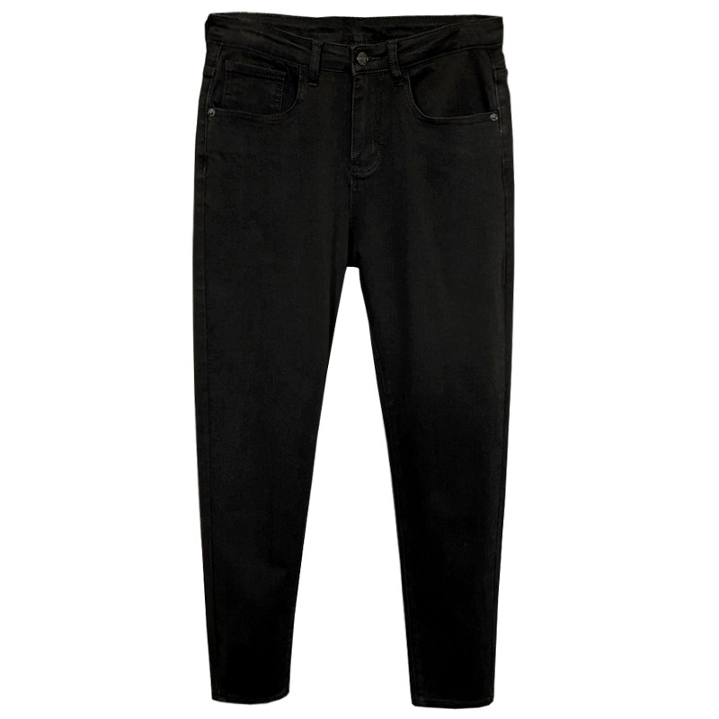 秋冬新款韩版弹力纯黑色牛仔裤男士潮流修身小脚裤复古简约九分裤