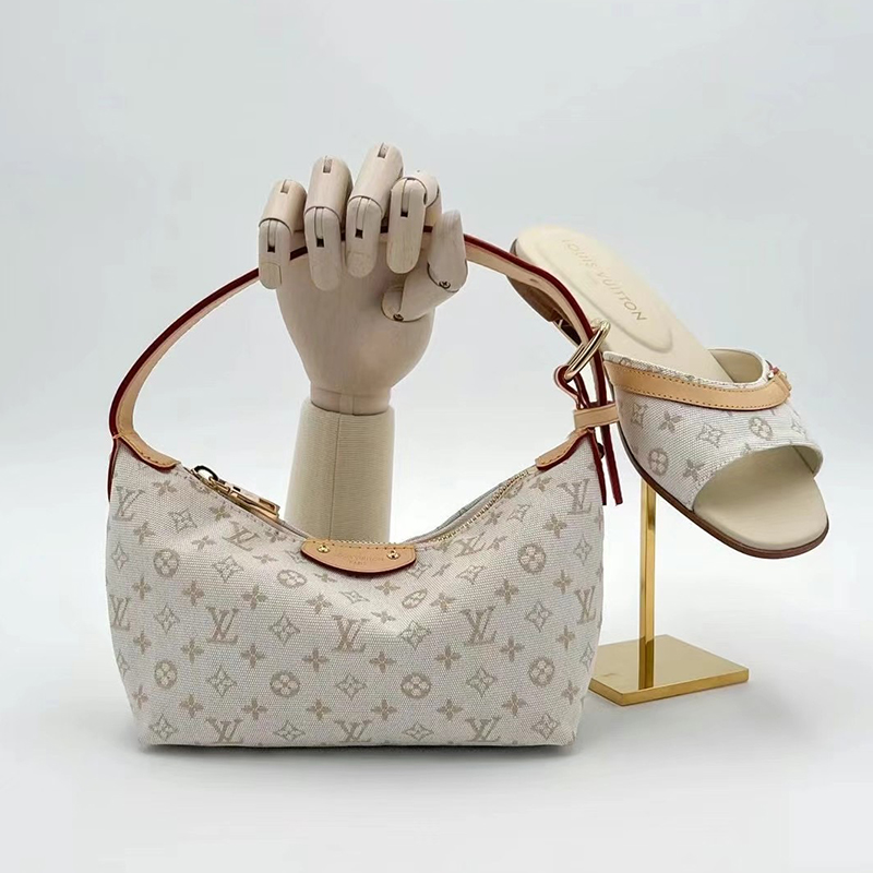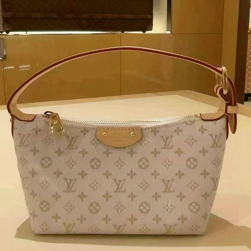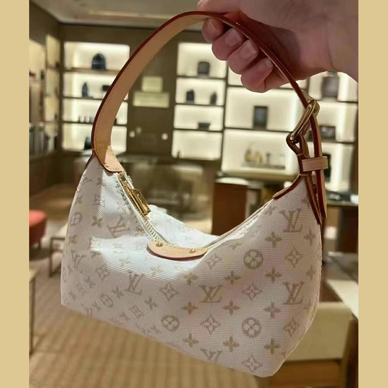 LV路易威登2024新款女包白色老花帆布Pochette Hills饭盒包腋下包