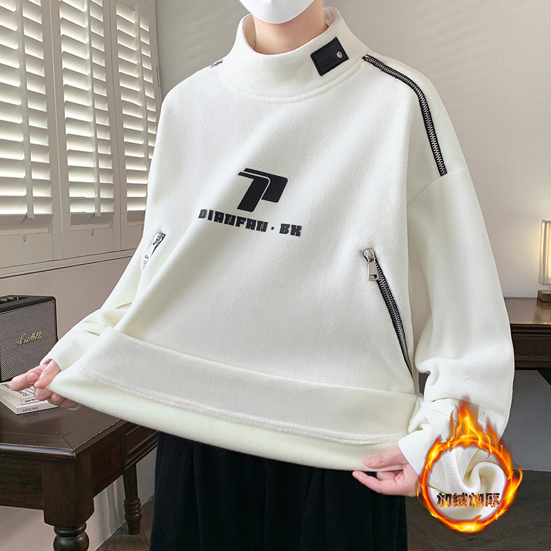 秋冬重磅新款青少年潮流半高领卫衣拉链设计加绒加厚个性保暖卫衣