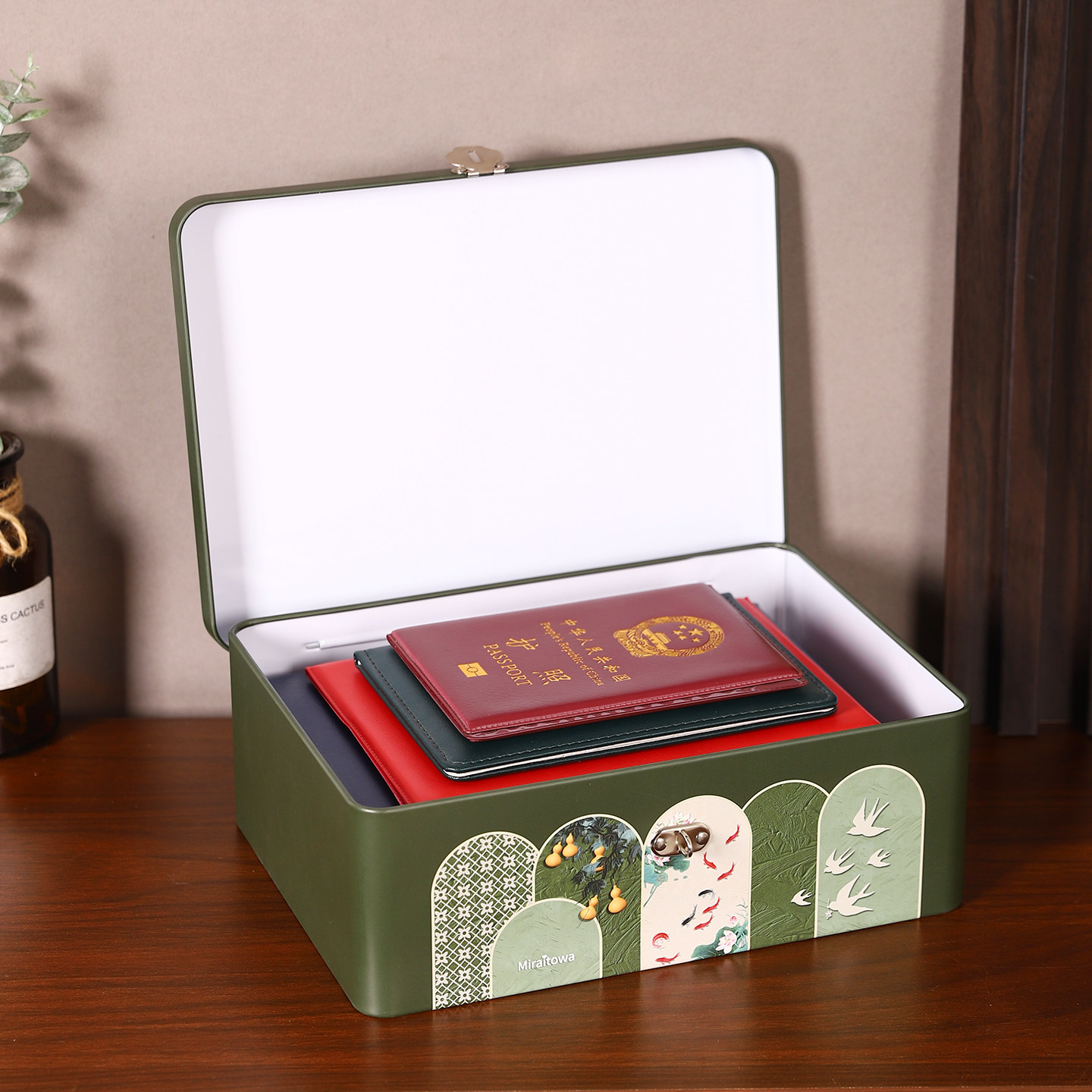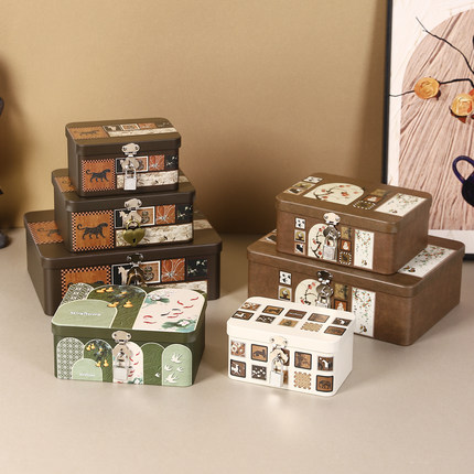 中古风带锁翻盖铁盒高级感方形收纳盒桌面首饰证件储物小盒子礼盒