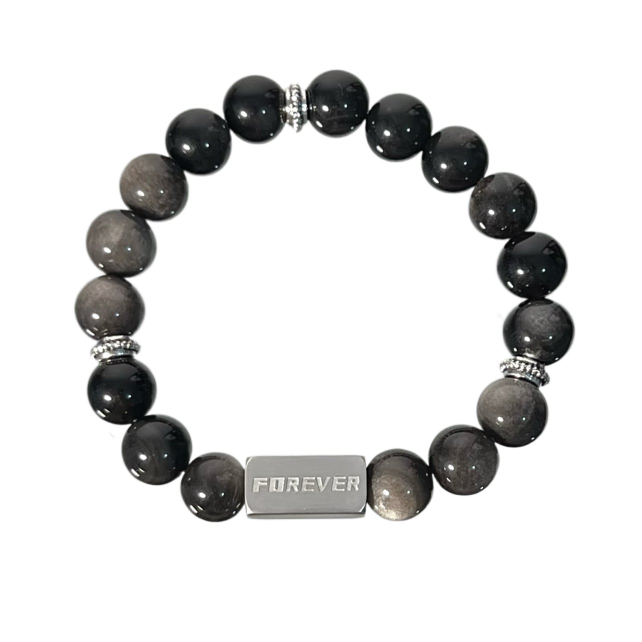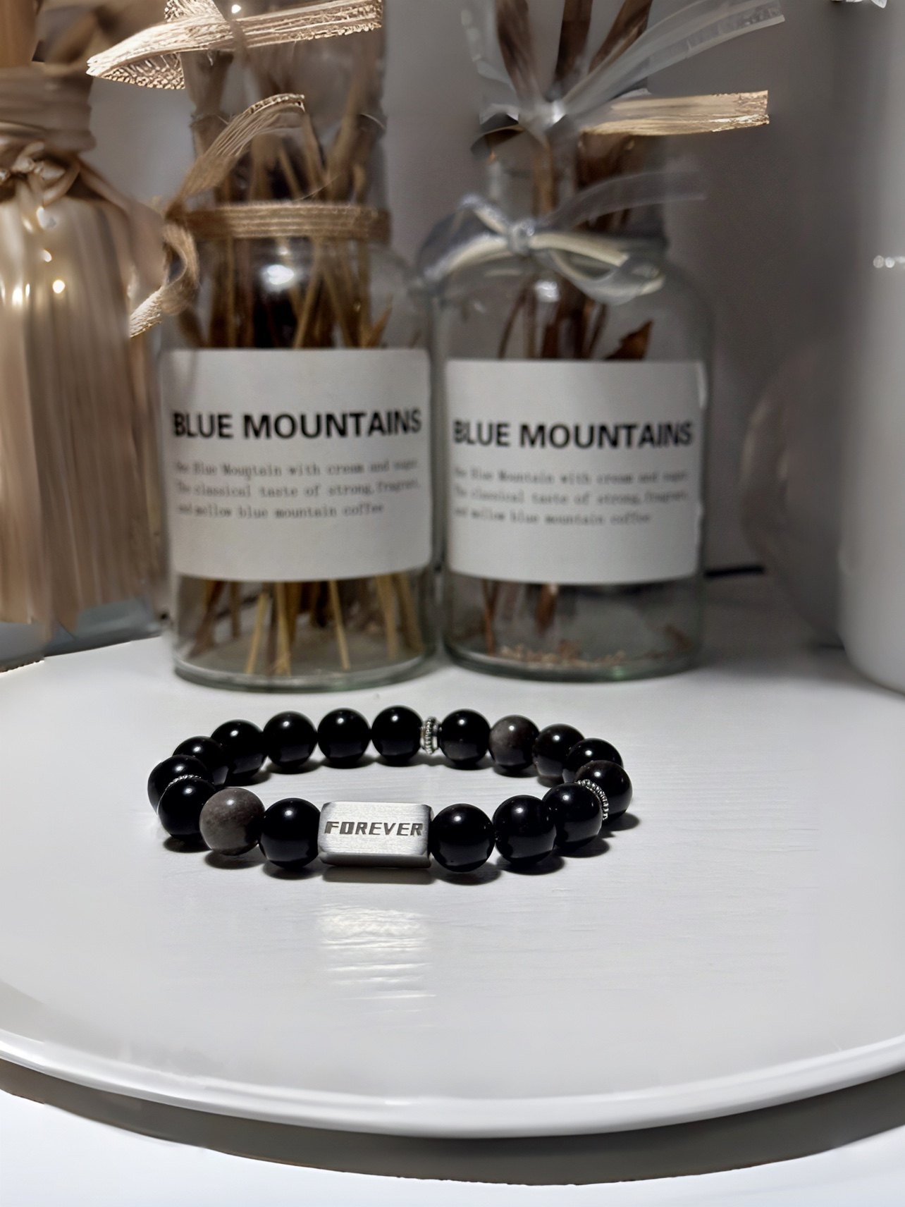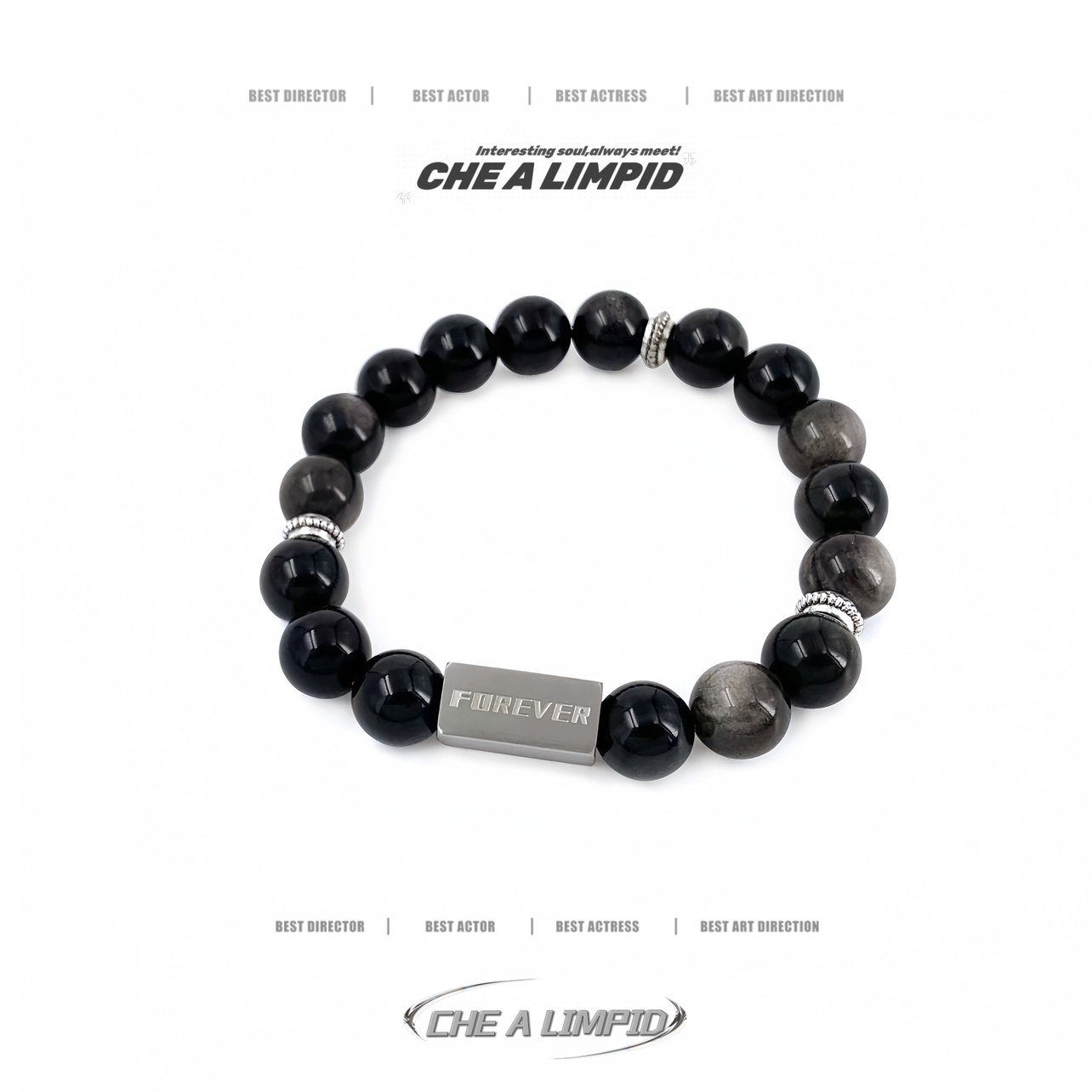 FOREVER/.永远银曜石串珠手串钛钢国潮百搭小众高级感男女手链