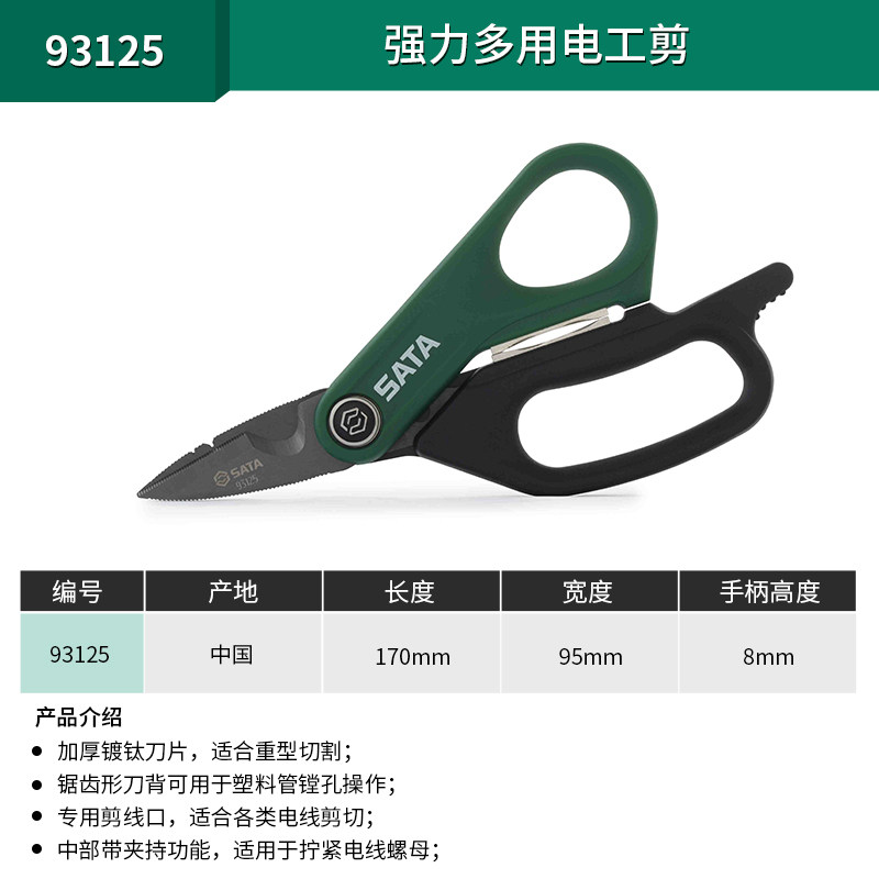 世达电工剪刀线槽剪电线剪刀剥线剪电缆剪刀多功能电工工具03131