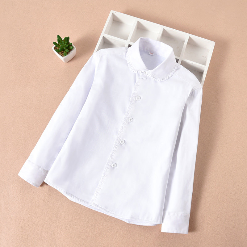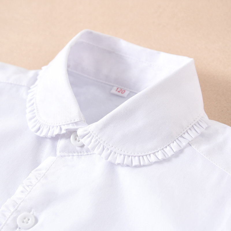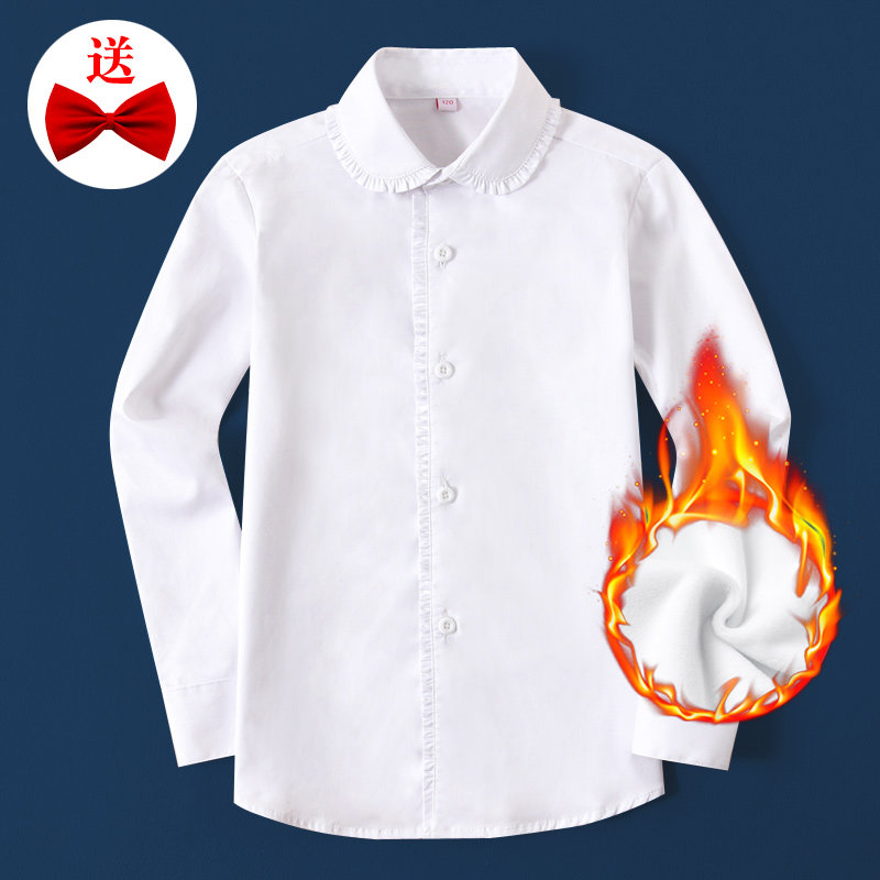 女童白衬衫长袖纯棉秋冬加绒加厚保暖中大童学生校园演出白色衬衣